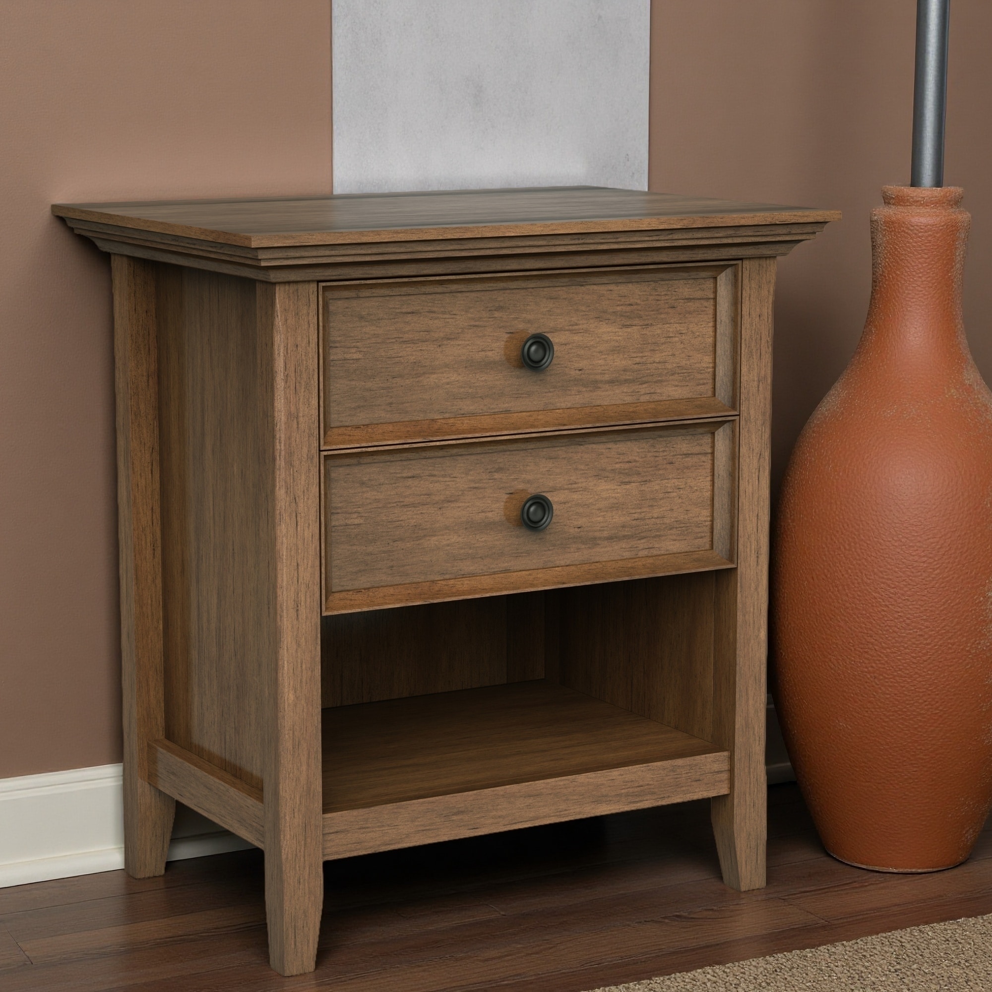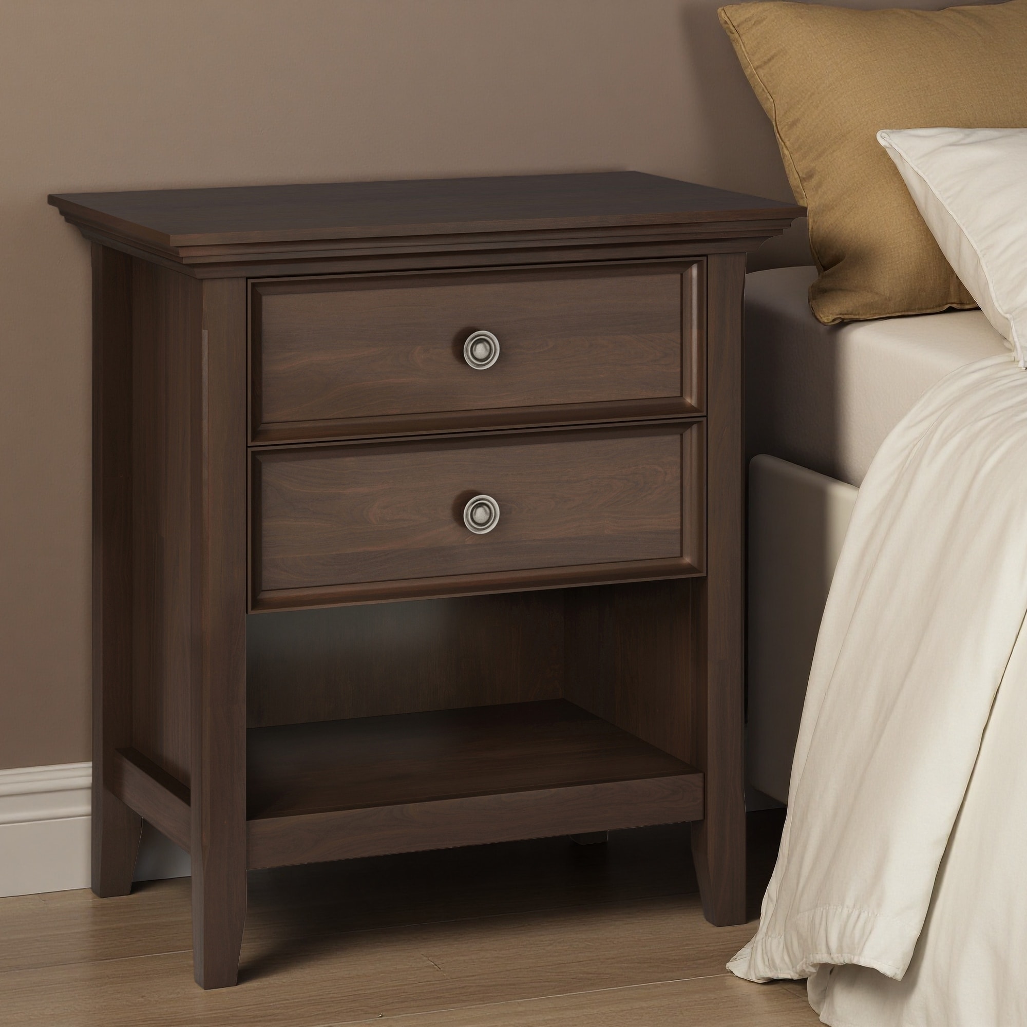 Product Description This sturdy nightstand is a brilliant yet functional solution for your bedroom to store personal things and other essentials. Two generously sized drawers provide ample storage for your belongings.