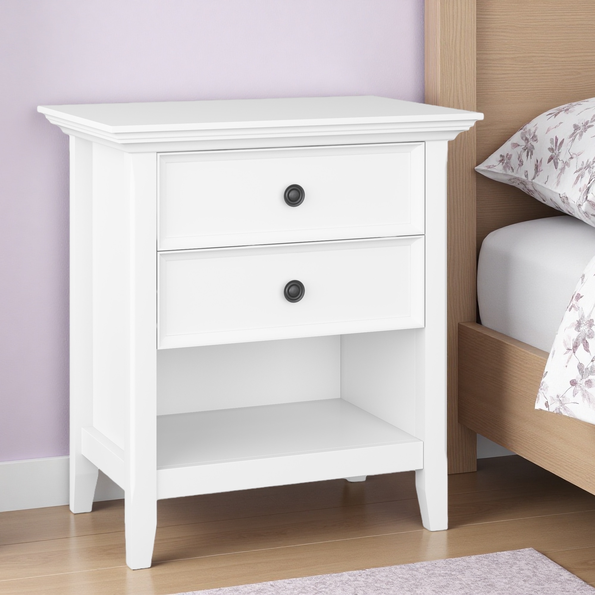 24"L Solid Wood Painted Nightstand, 2 Drawers & Open Bottom Storage, Transitional