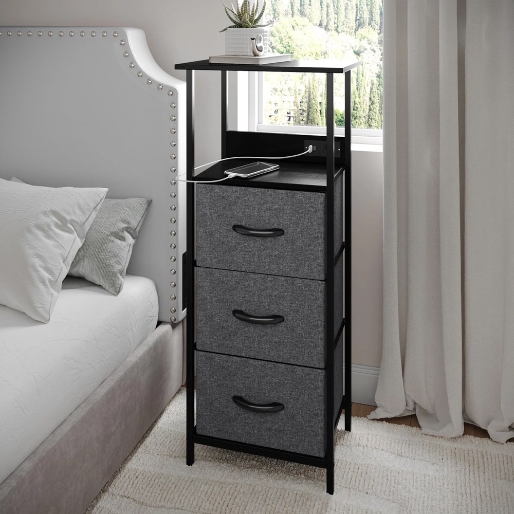 3 Fabric Drawer Nightstand with 2 USB Port/1 Outlet Charging Station