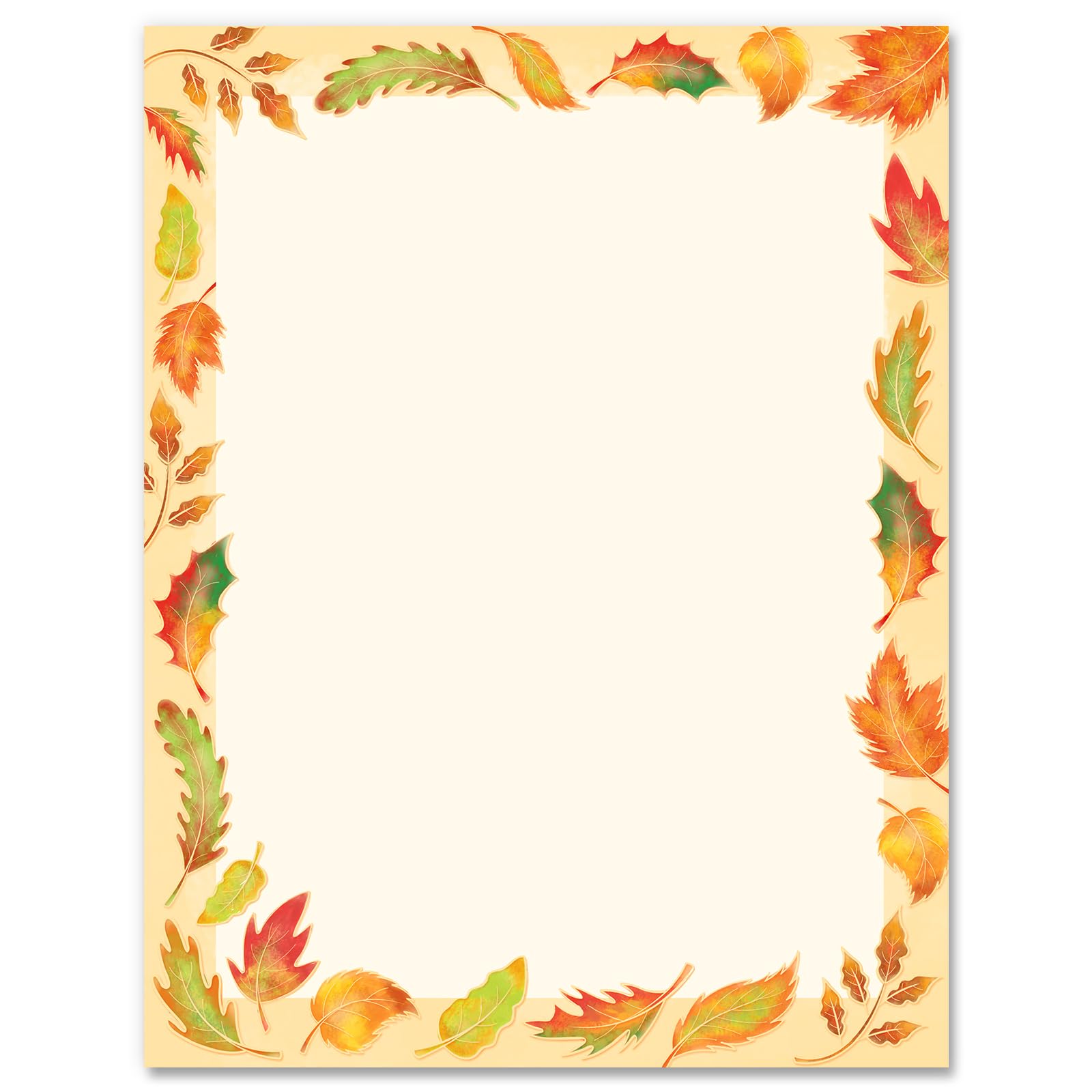 Generic 60 Sheets Fall Stationery Letterhead Paper Autumn Leaves Border Letter Paper Vintage Greeting Note Paper for Thanksgiving Invitation Office