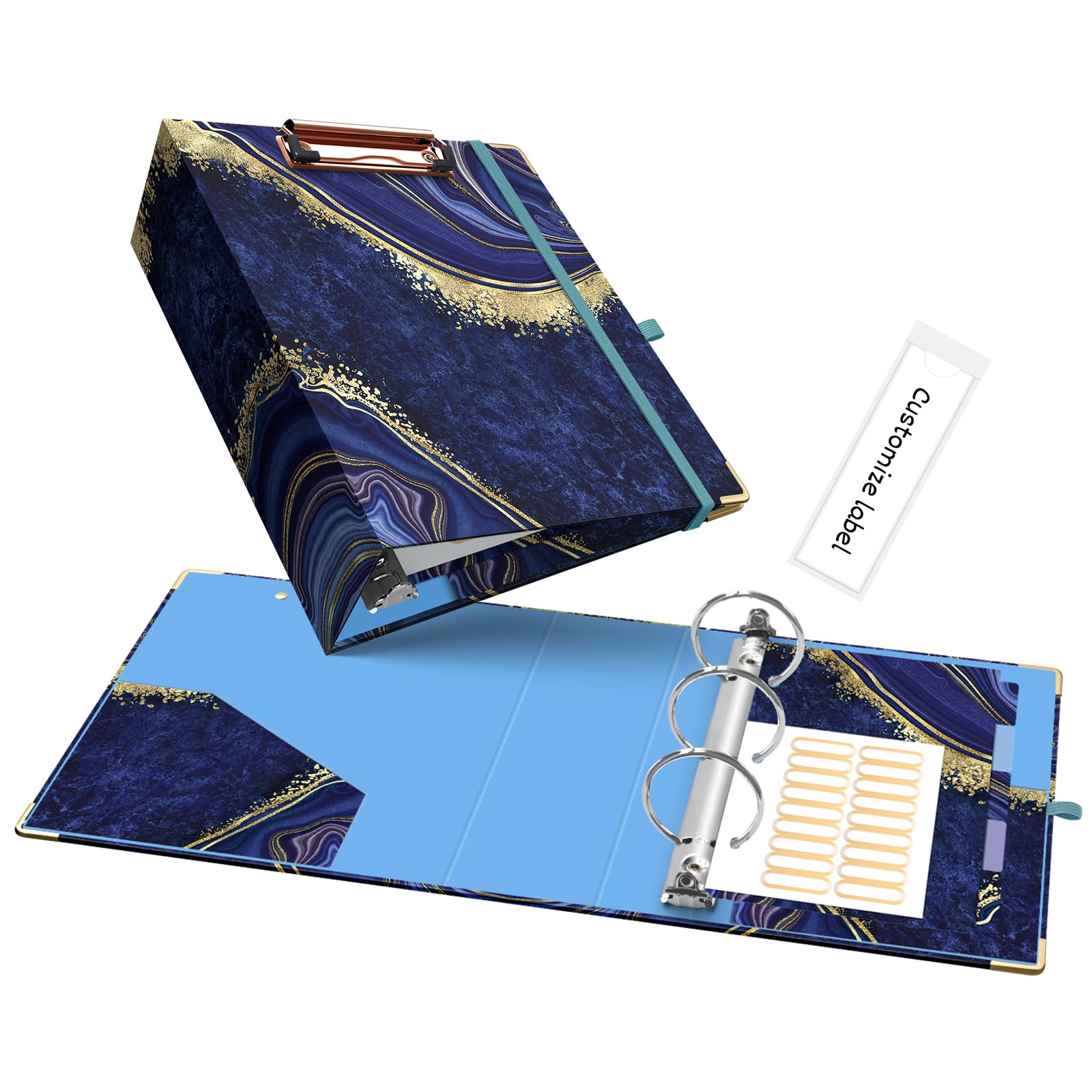 Ospelelf Mini 3-Ring Binder, 2-Inch, Cute for 5.5" x 8.5" with 5 Tab Dividers, File Folder Labels and Low Profile Clipboards, Blue Marble for School