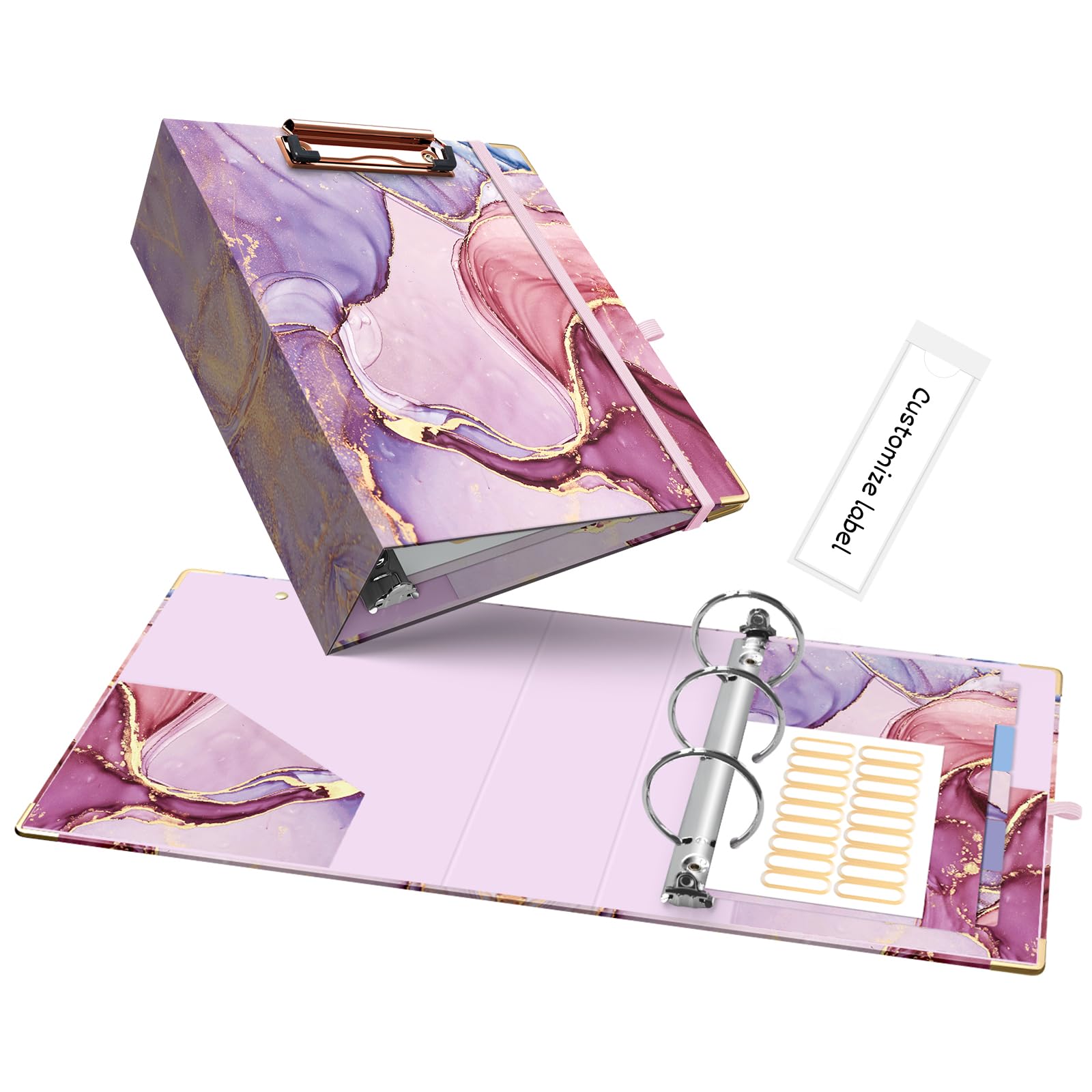 Ospelelf Mini 3 Ring Binder, 2 Inch, Cute Pink Marble Binder for 5.5" x 8.5" with 5 Tab Dividers, File Folder Labels and Low Profile Clipboards