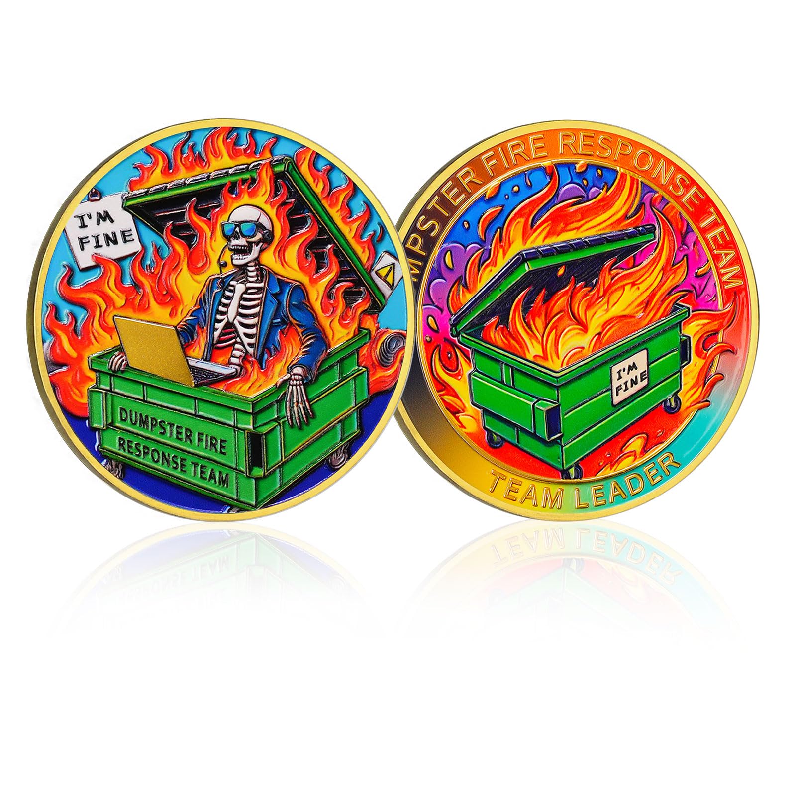 CHURYUML Dumpster Fire Response Team Coin - Hilarious I'm Fine Dumpster Fire Novelty Chip, Funny Inspirational Office Gifts for Coworkers Colleagues