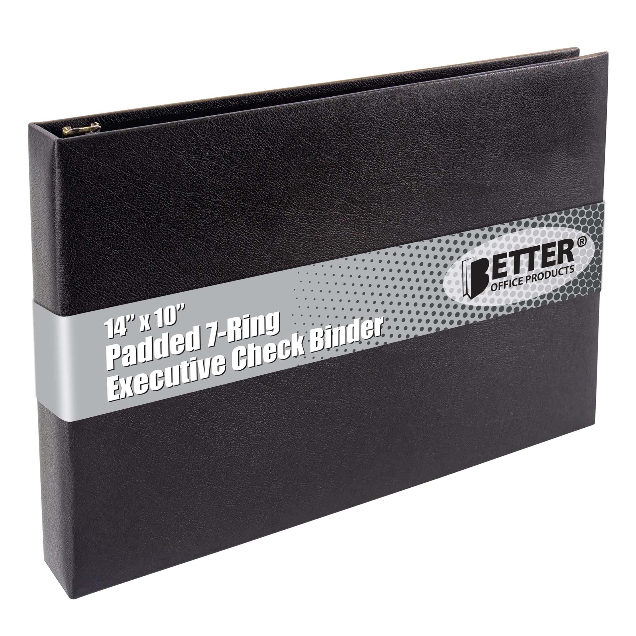 Better Office Products 7 Ring Executive Check Binder with Zipper Pouch, Padded Black Textured Cover, for 9" x 13" 3 Per Page Business Checks, 600