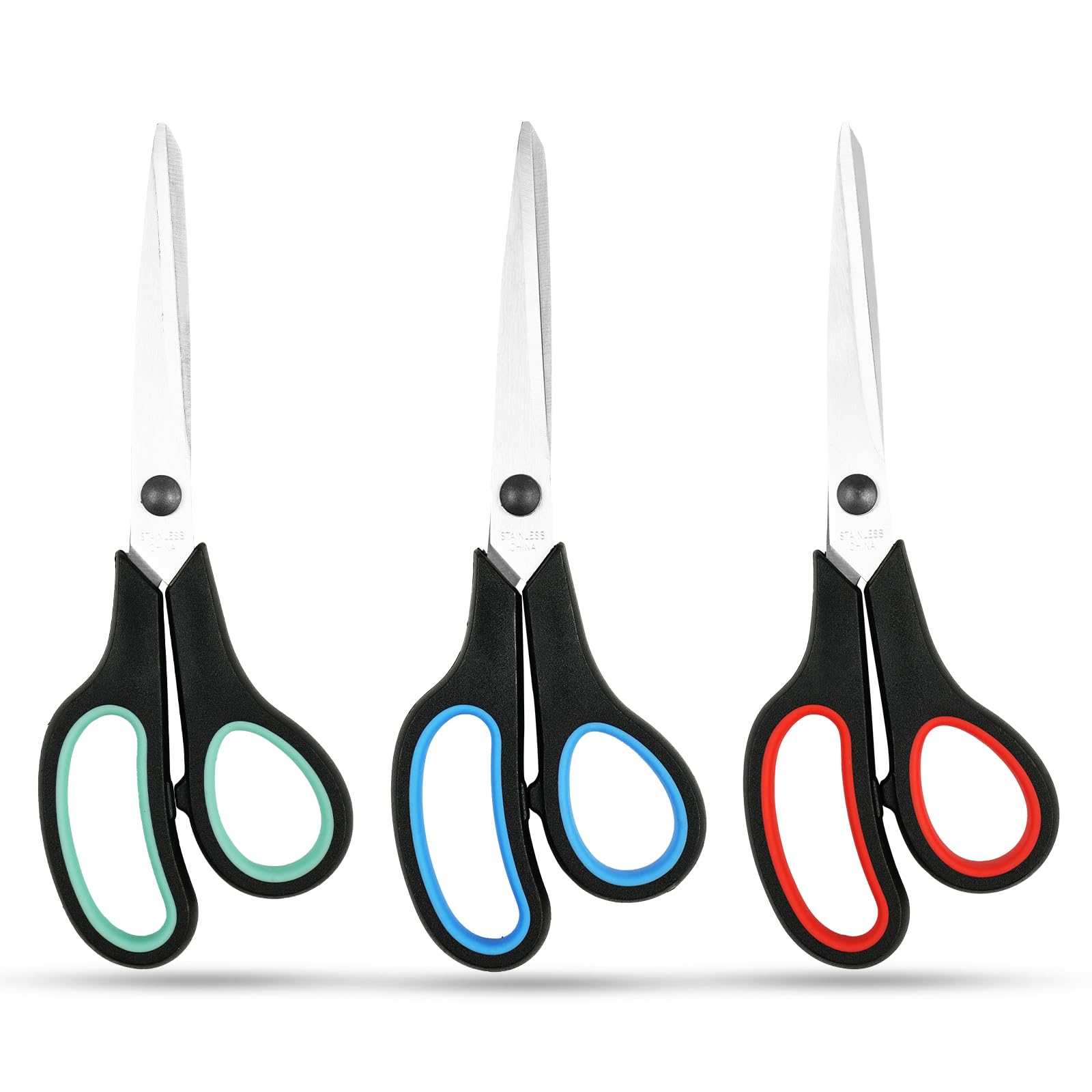 3-Pack 8" Heavy Duty Scissors with Ultra Sharp Blades and Comfort Grip Handles - For Office, Home, School, Sewing, and Crafts (Black Green/Black Red/