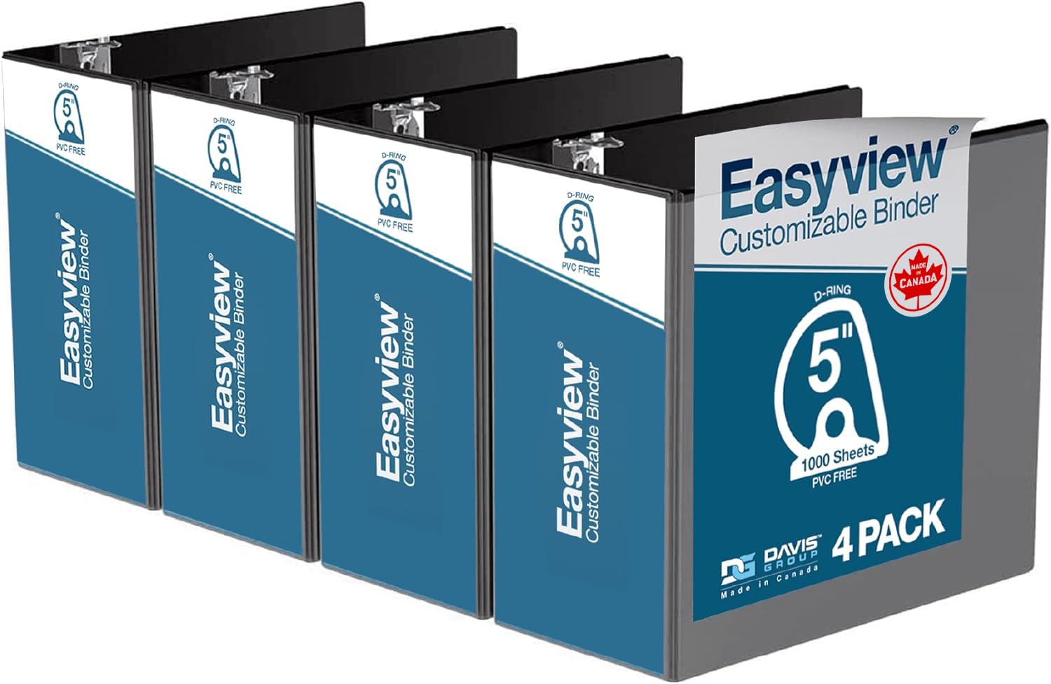 Easyview Premium 3-Ring Binders with Clear-View Covers and D Rings, Binders for School or Office, 5 Inch, Pack of 4, Black