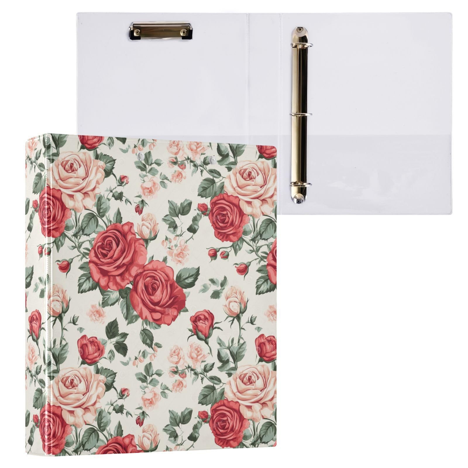 PDYRLEN Vintage Floral Roses 3 Ring Binder, 1.5 Inch Round Ring Binders Clipboard Work Binders Organizer with Pockets Holds 200 Sheets for School