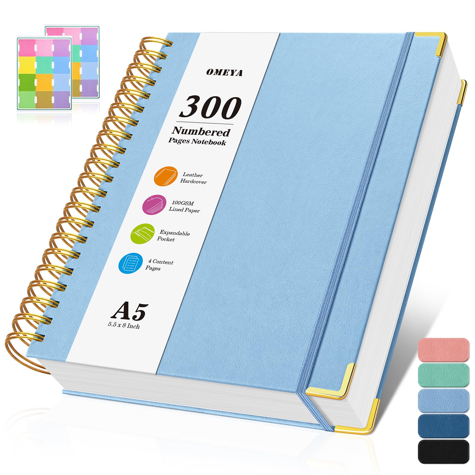 Spiral Notebook, 300 Numbered Pages Notebooks College Ruled with Contens, 100GSM Thick Journal for Women Men, Hardcover Leather Lined Journal for
