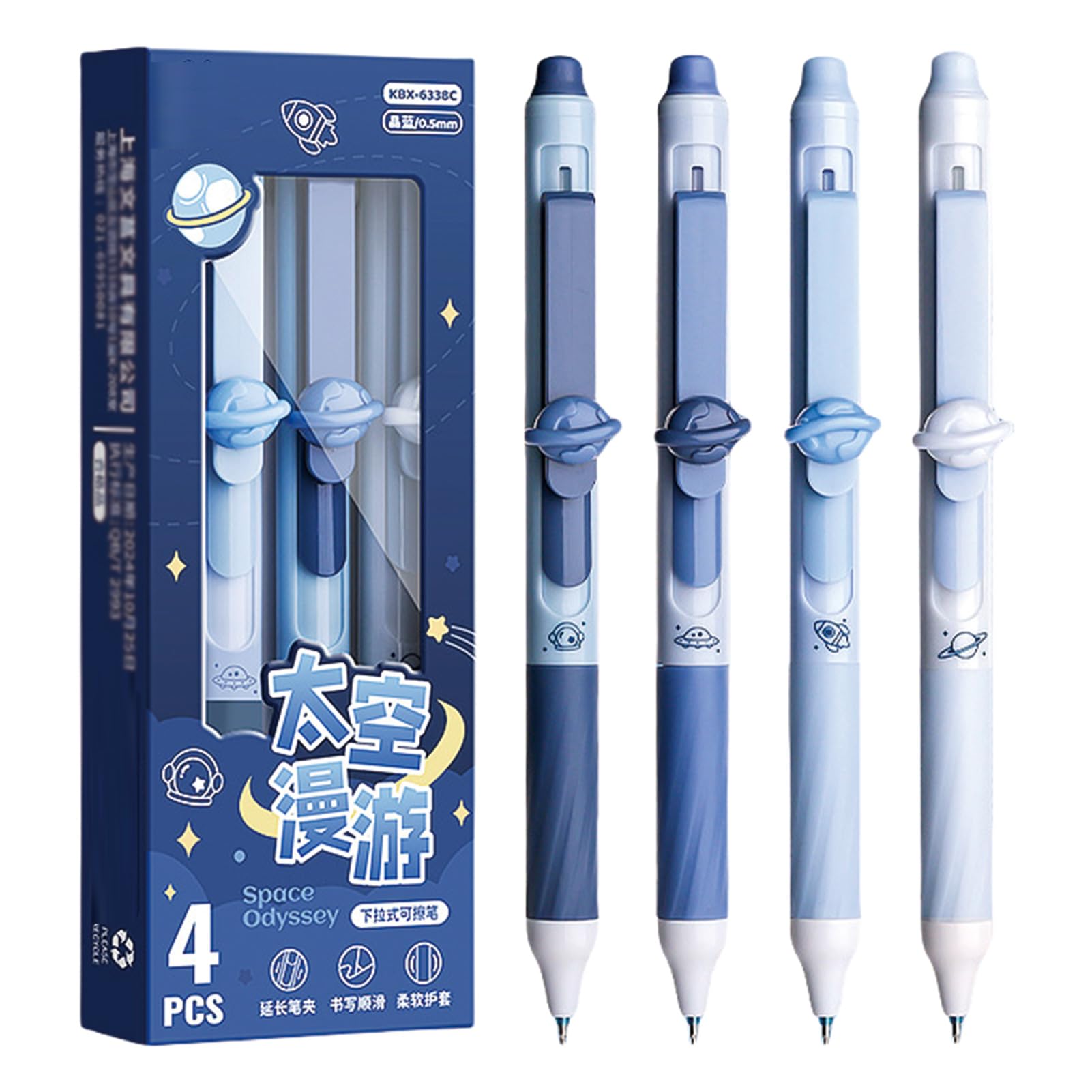 MOZXIRZ 4 Pcs Erasable Gel Pens Cute Retractable Pens Cartoon Space Erasable Pen 0.5mm Black Ink Kawaii Writing Pen for Women Office School Supplies (
