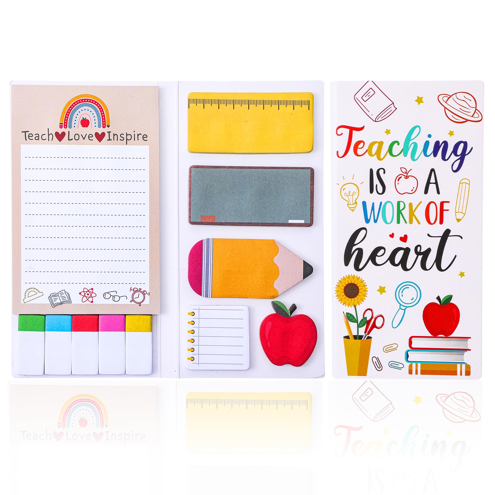 QFGasre Teacher Appreciation Gifts-Teaching is A Work of Heart Sticky Notes Set Fun Self-Stick Note Pads Writing Notes School Office Supplies Suitable