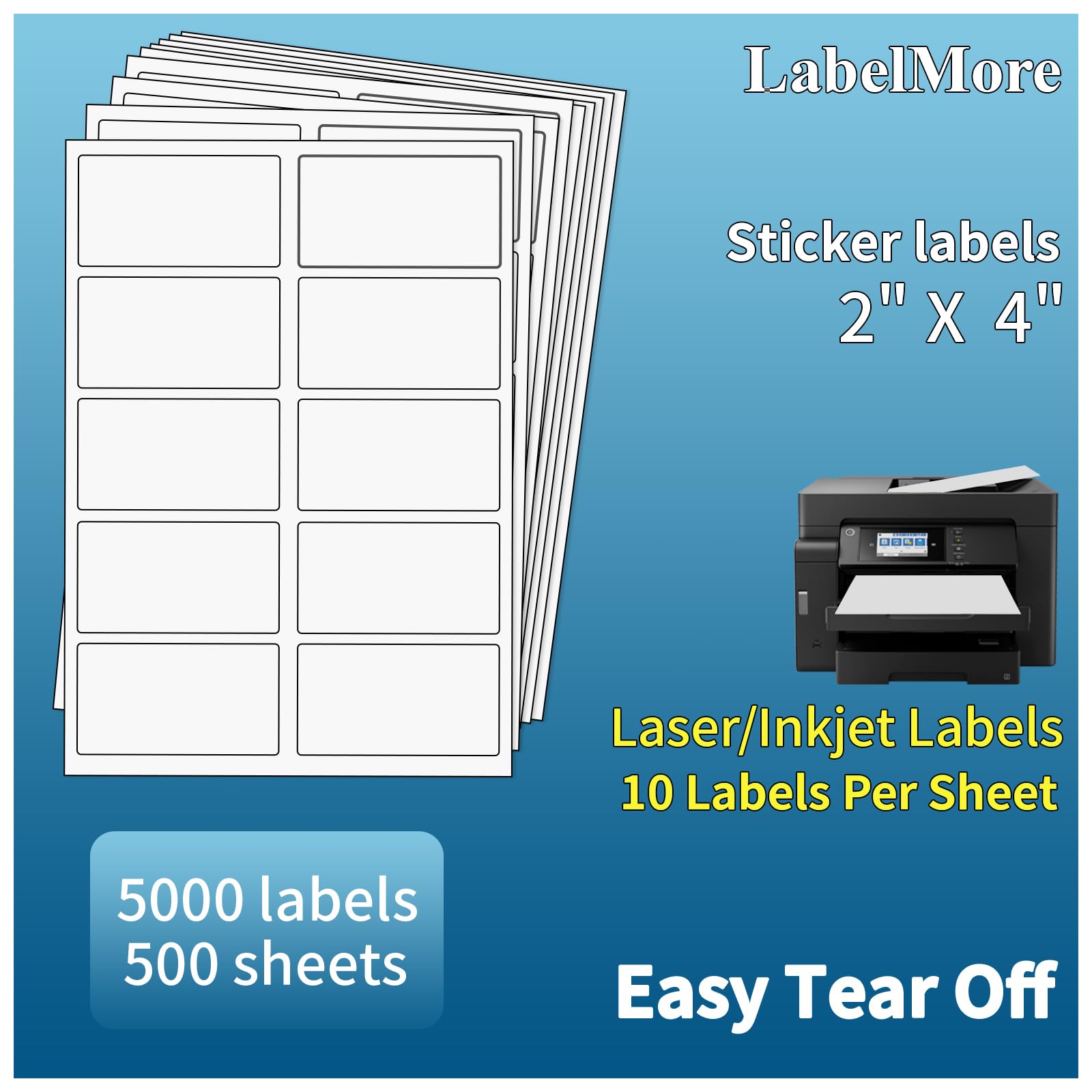 ✔️【Package】Label size: 2" x 4", Sheet size: 8-1/2" X 11" (US Letter Size), 10 Labels per sheet, 500 Sheets = 5000 Labels in total ✔️【Permanent Adhesive】- LabelMore 2x4 shipping labels are made of strong universal permanent adhesives, which can be strongly adhered to cardboard boxes,