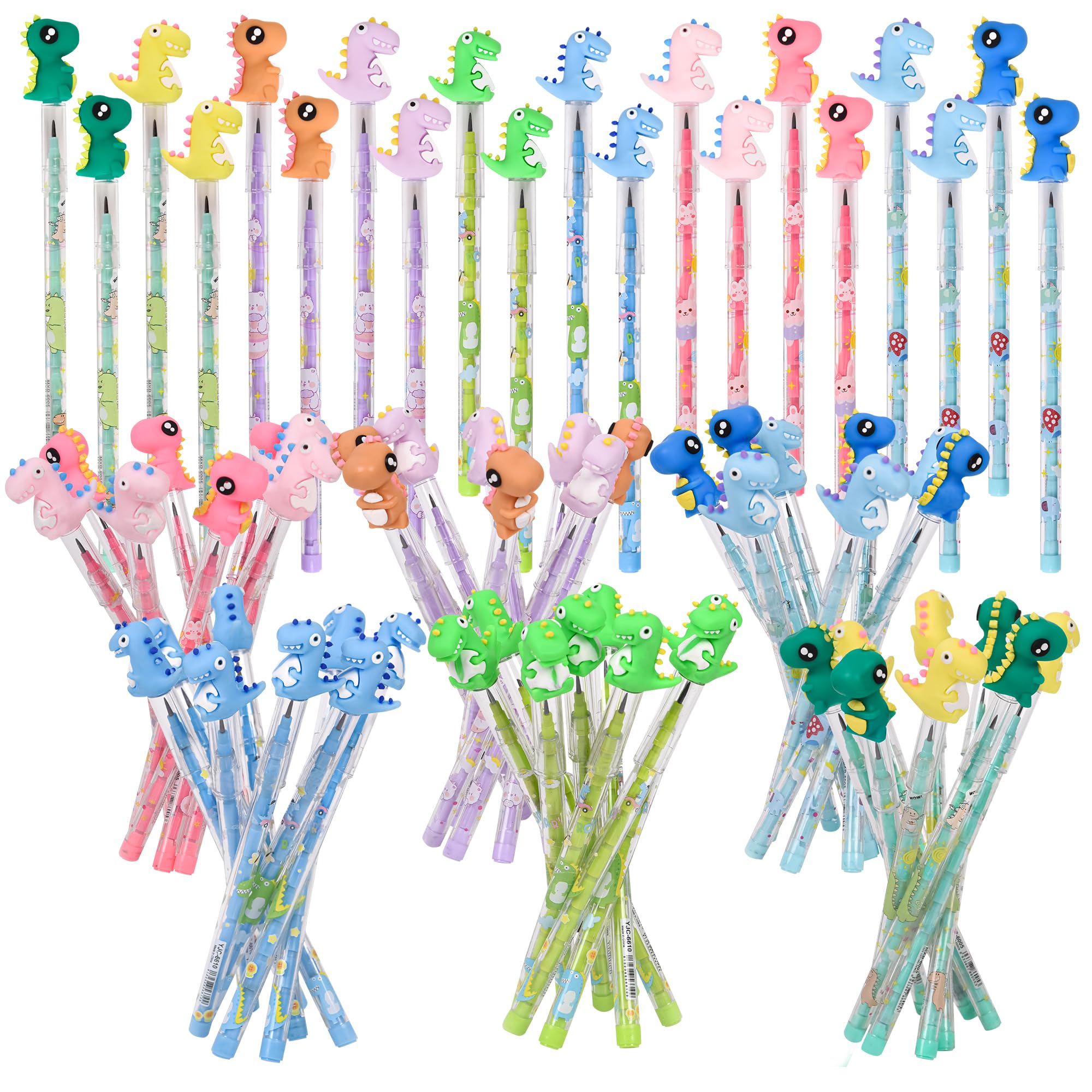 Ulema 48 Pieces Cute Dinosaur Stackable Pencils Cartoon Dinosaur Study Supplies Translucent Multi Point Push Fun Pencils Gifts for School Supplies