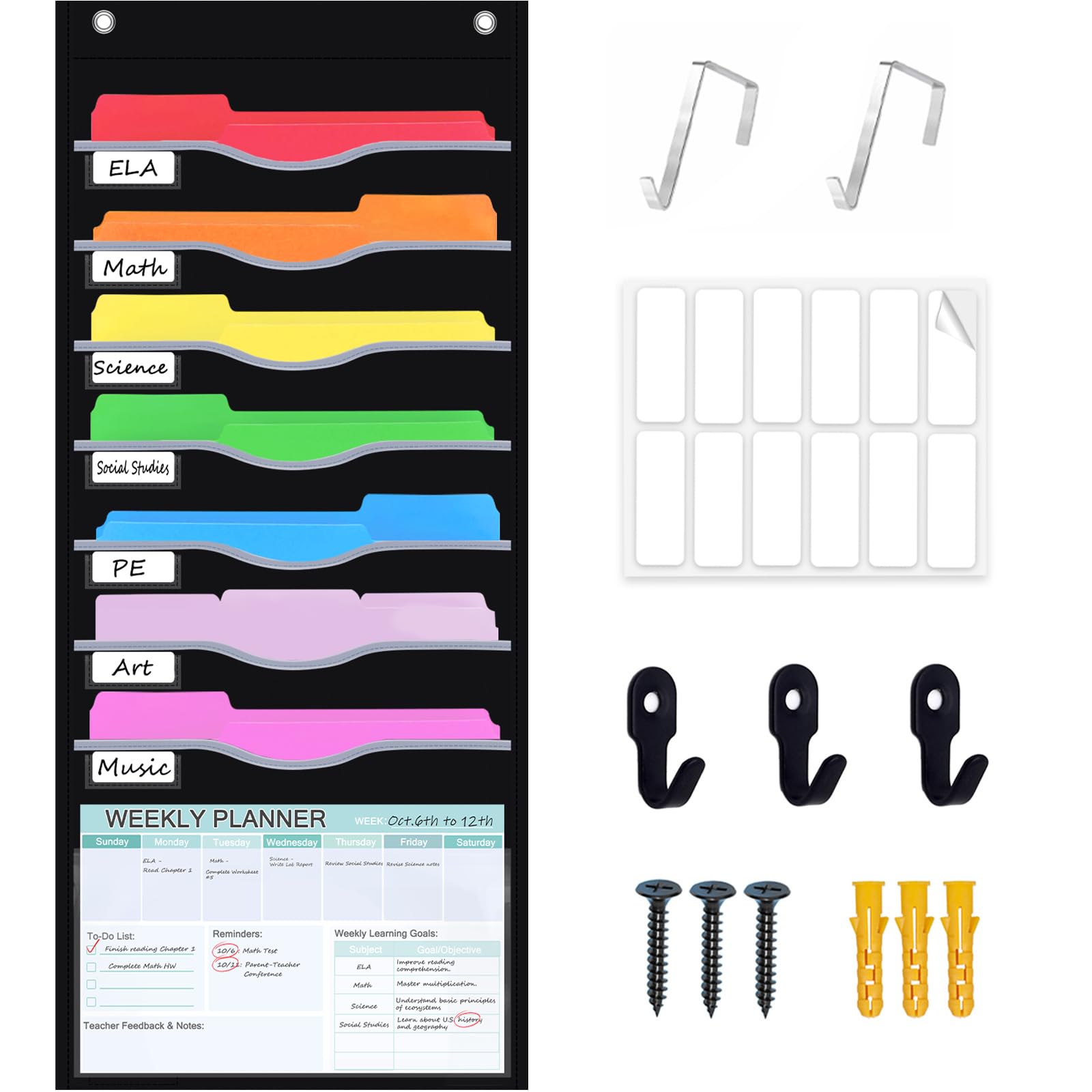 ALSLEA 8 Pockets Hanging Wall File Organizer 15" Extra Wide Pocket Chart for Classroom, Office, Home, Mail Organizer Wall Mounted with 1 Writable