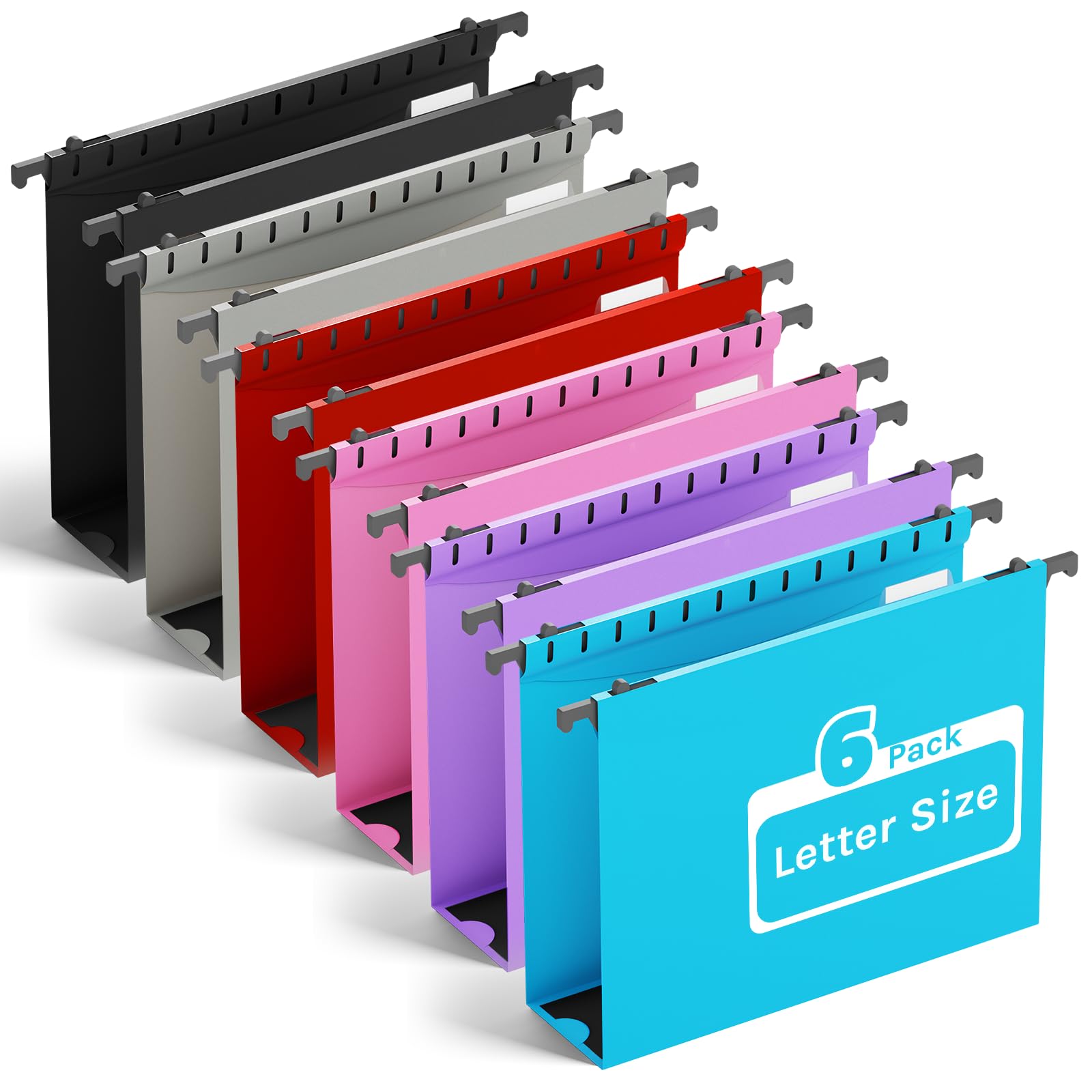 Ansook Hanging File Folder Letter Size Extra Capacity,Heavy Duty 2" Expansion Plastic File Folders Hanging with Tabs,6 Pack Reinforced Hanging File