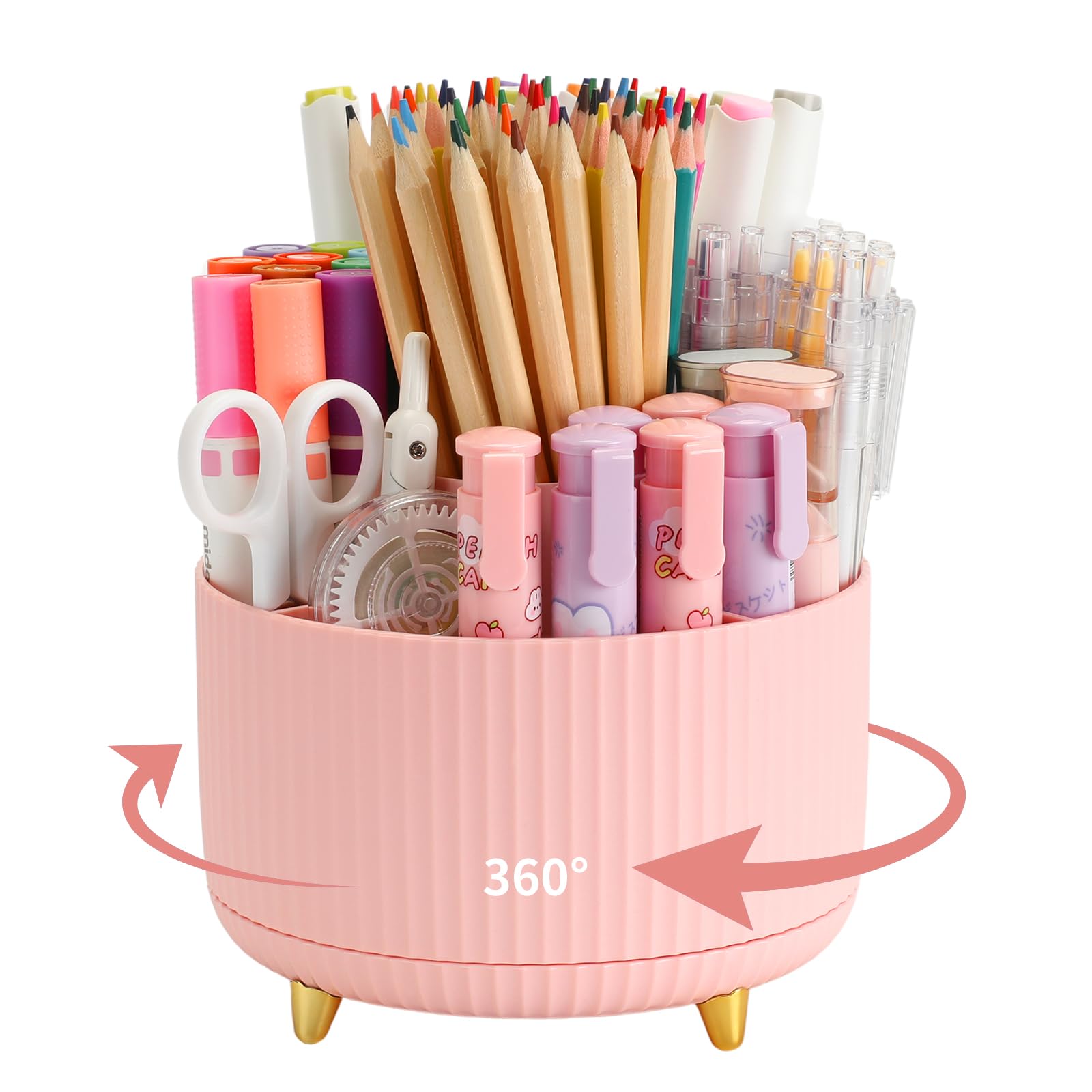 Camelmother Pen Holder For Desk With 5 Slots 360°Rotating Pencil Holder Makeup Organiezr Teacher Supplies Office decor (pink)