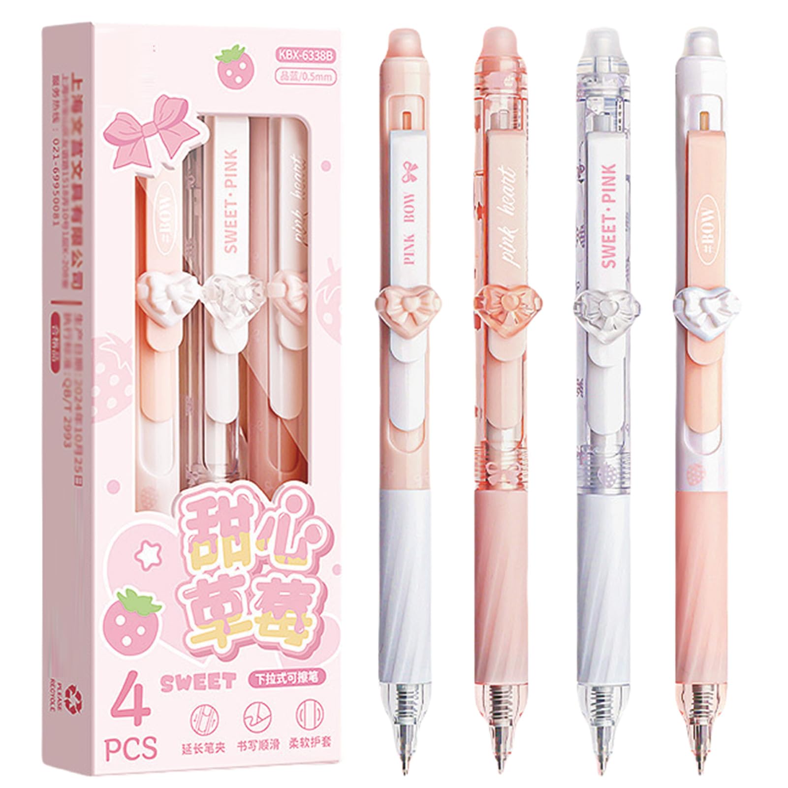 MOZXIRZ 4 Pcs Erasable Gel Pens Cute Pink Retractable Pens Cartoon Heart Erasable Pen 0.5mm Blue Ink Kawaii Writing Pen for Women Girls Boys Office