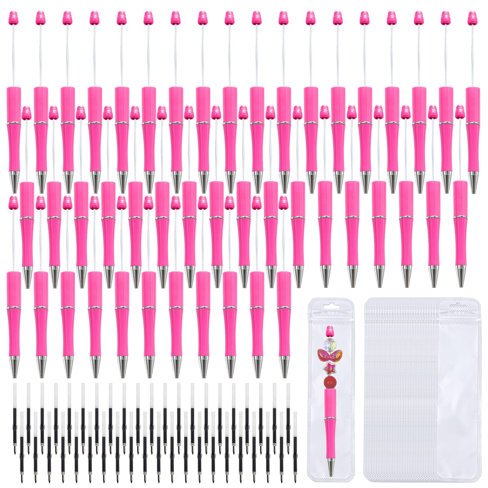 108 Pieces DIY Beadable Pen Bulk Kit – 36PCS Ballpoint Pens with Refills & Bags – Beaded Pens for DIY Crafting – Beads Pens Supplies, Pen Making Kit,