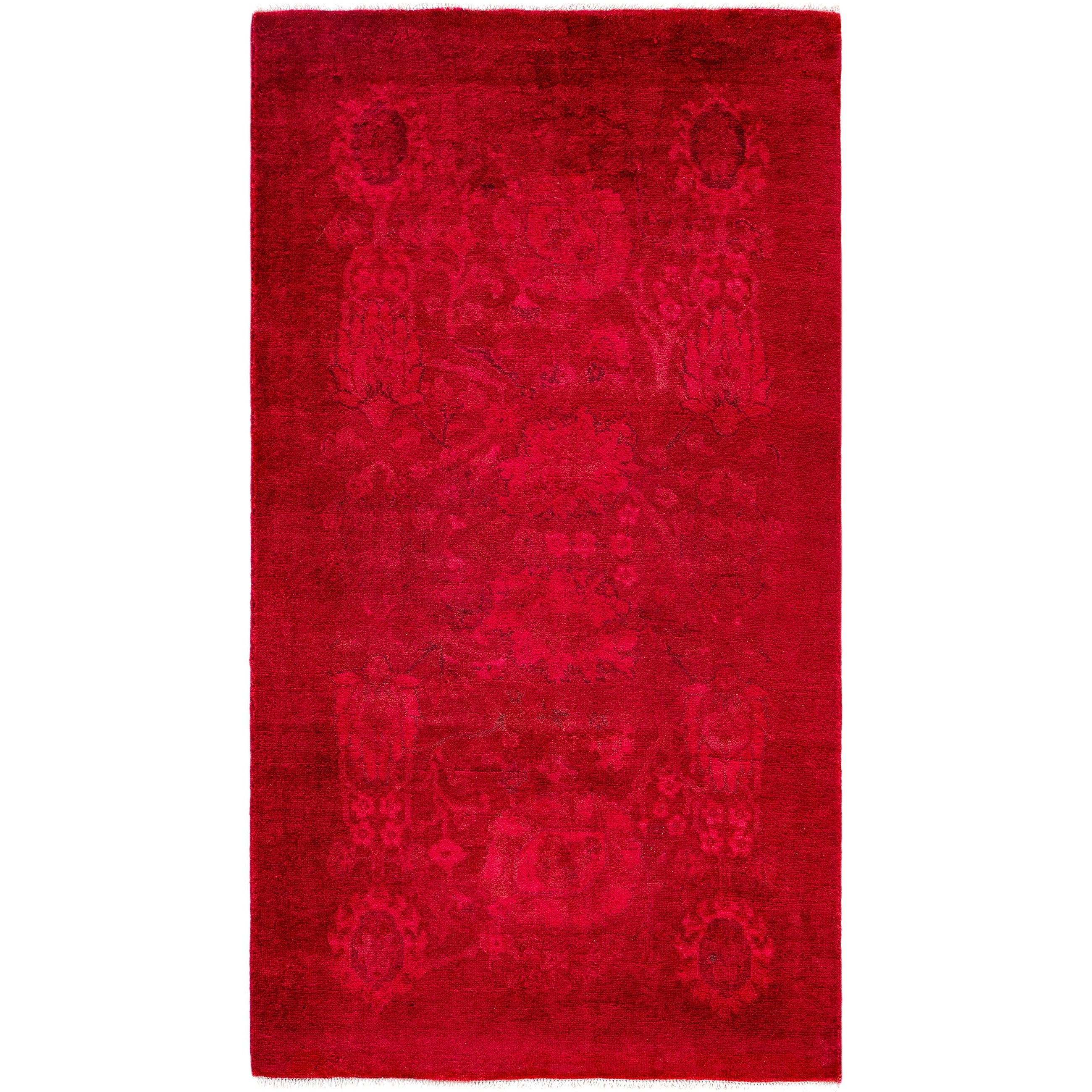 Overdyed One-of-a-Kind Hand-Knotted Area Rug - Red - 2' 7" x 12' 6"