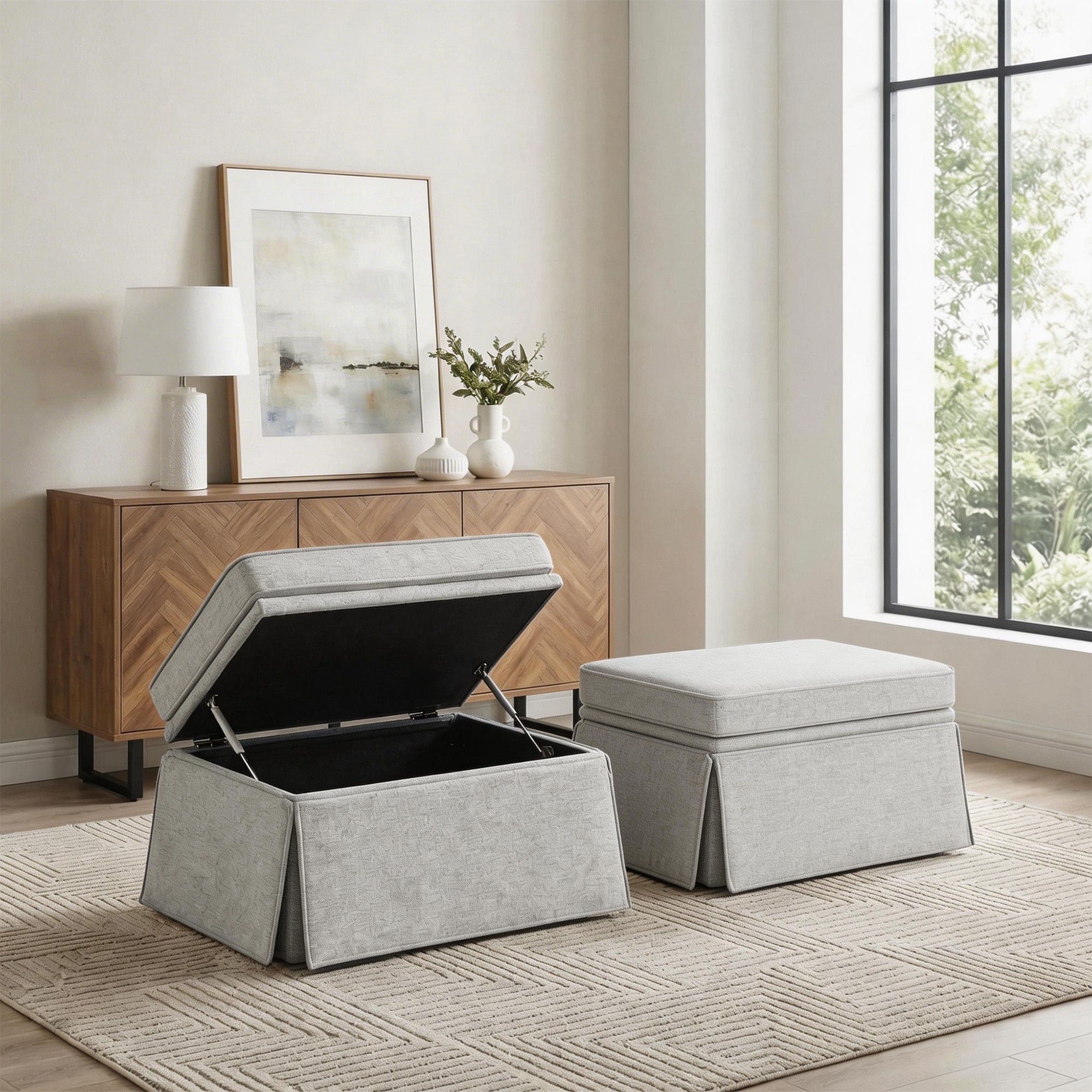 Set of 2 Cheille Skirted Rectangular Flip-Top Storage Ottoman