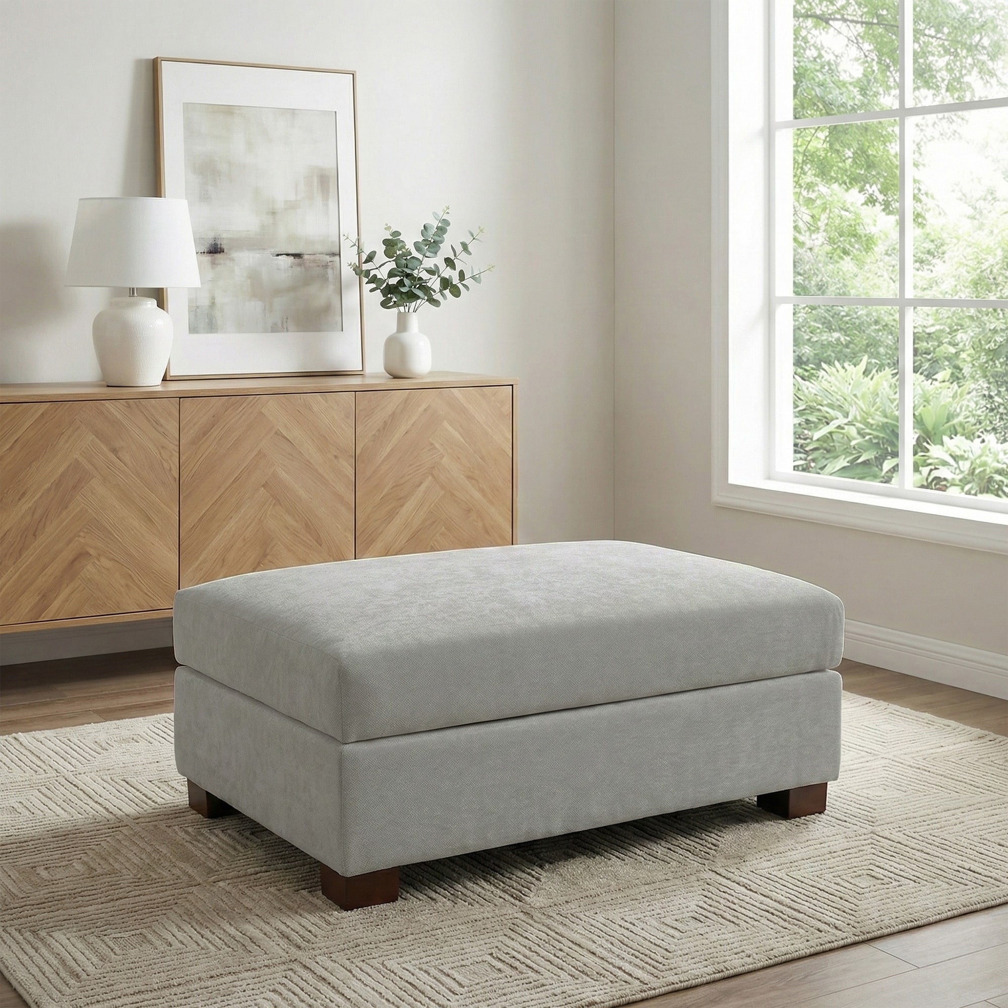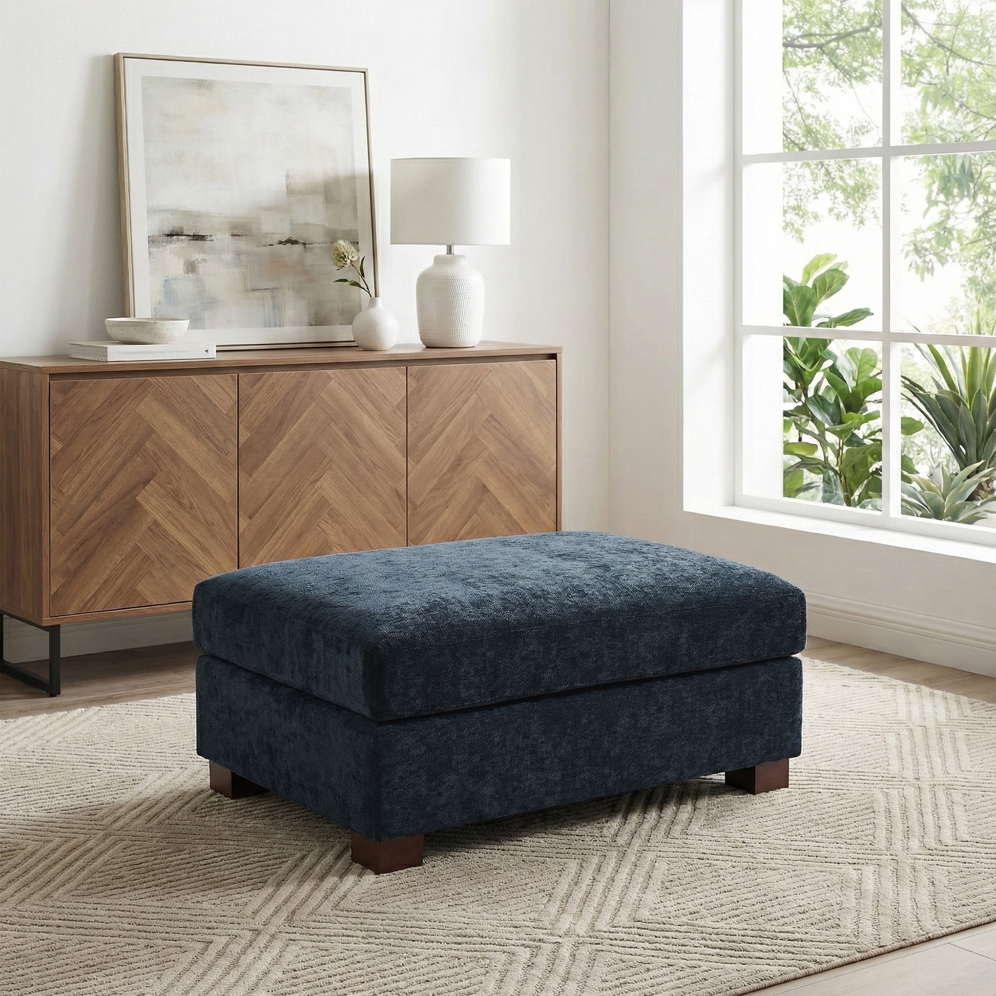 41" W Modern Rectangle Chenille Ottoman