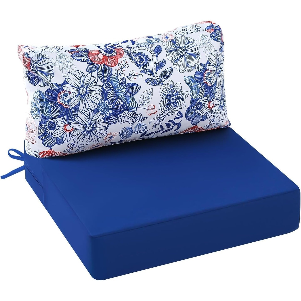 Outdoor Water Resistant Chaise Lounge Cushions, Blue, 2 Pack