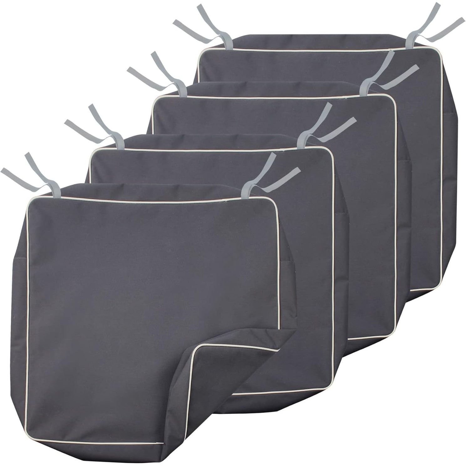 Outdoor Chair Cushions Set of 4, 17x17x3 Inch, Waterproof with Ties, D-Shaped Patio Furniture Seat Cushions
