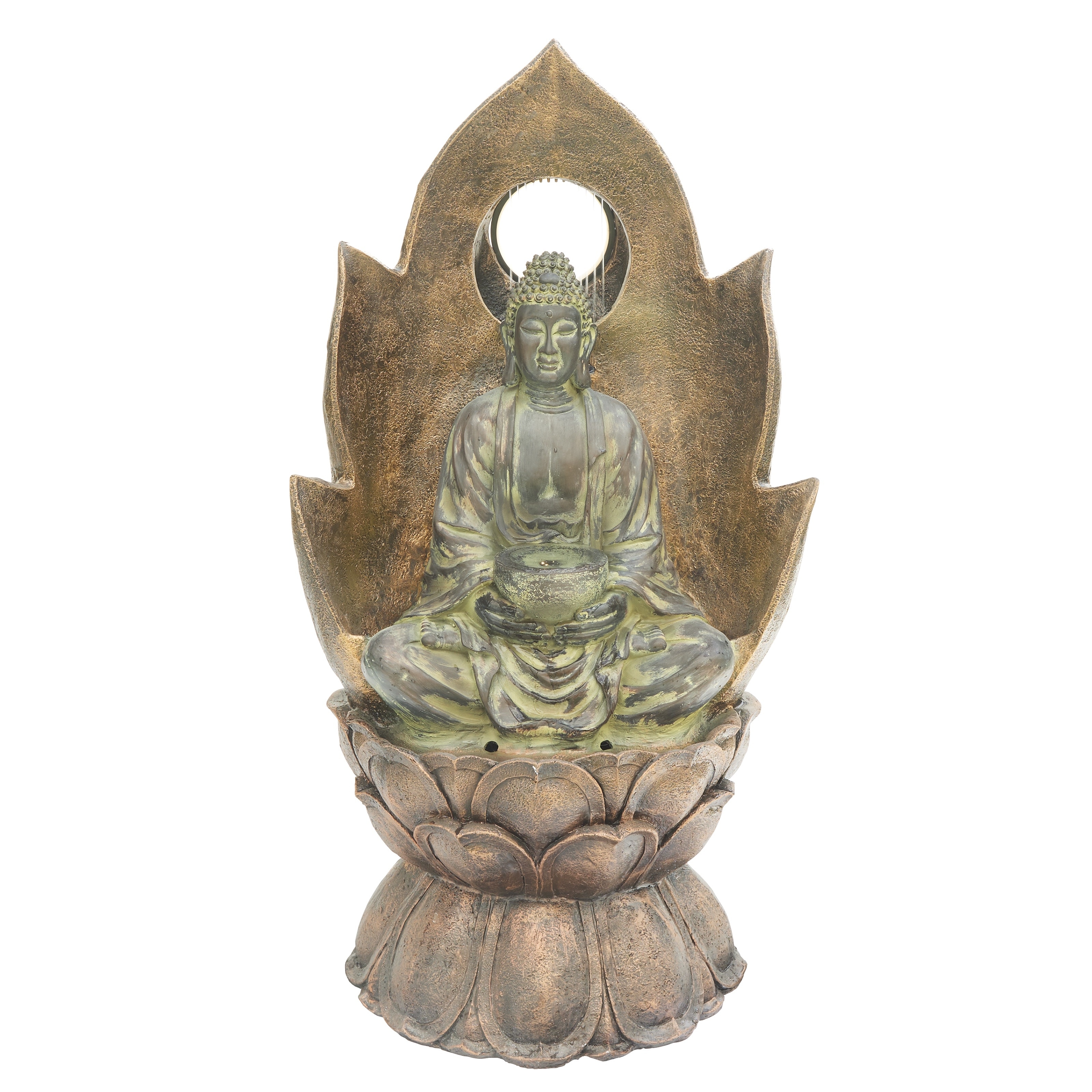 Alpine Corporation TZL420 59" Outdoor Buddha Fountain with LED Lights - Stone Look Water Feature for Garden, Patio & Yard, Brown