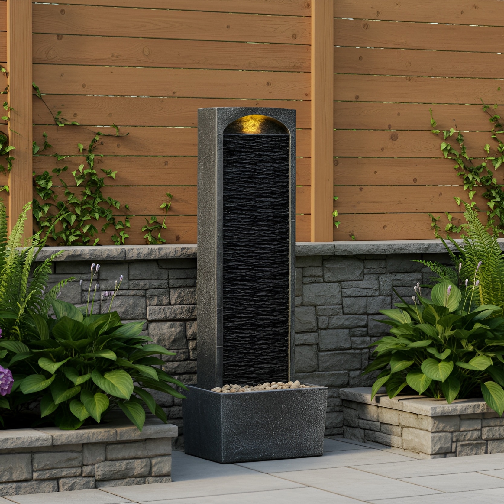 SKU: GSI-835 Sunnydaze Rippled Slate Indoor-Outdoor Water Fountain 48" Water Feature w/ LEDThis slate indoor/outdoor water fountain will add modern zen to any indoor living space, patio, or yard.