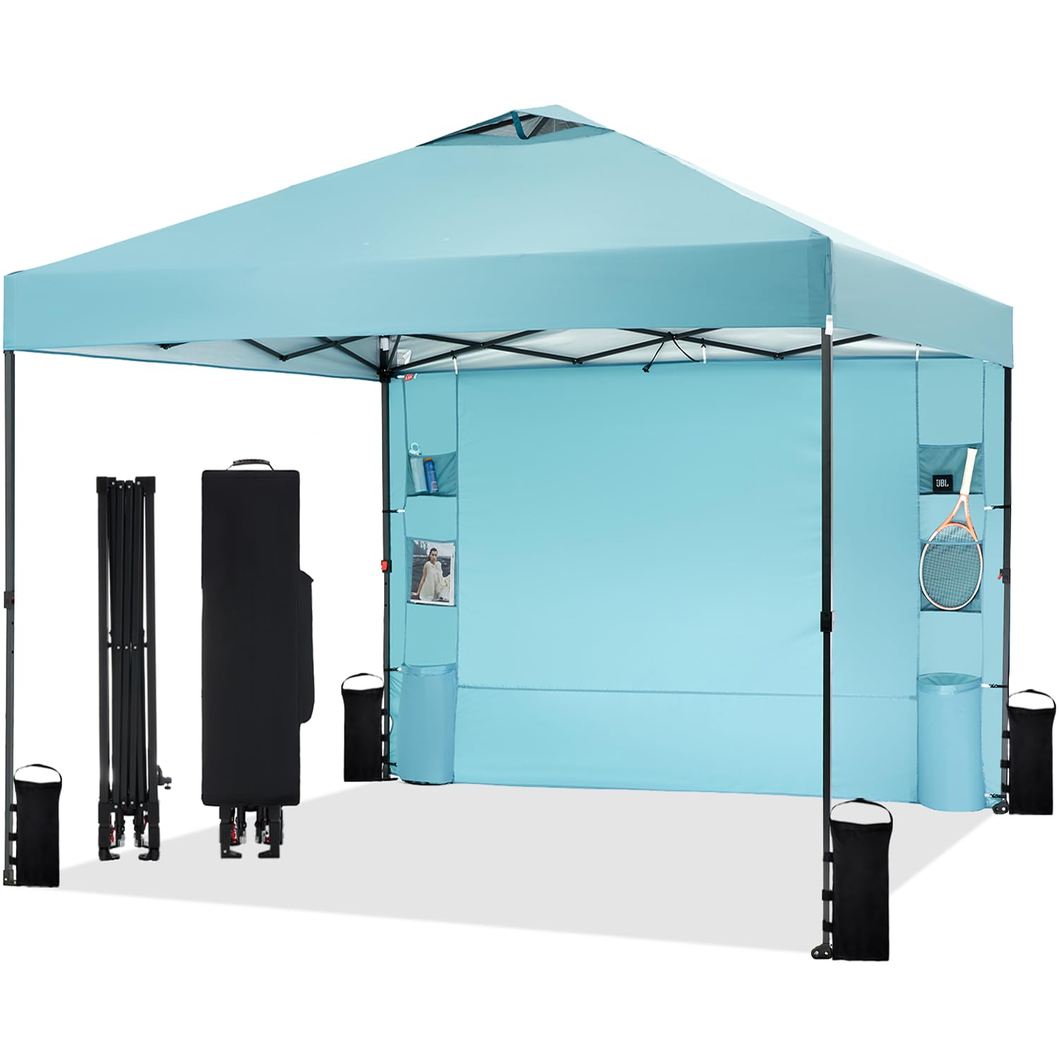Tunbne 10'x10' Pop Up Canopy Tent with 1 Sidewall and 6 Pockets, One Push Setup, Instant Shade Tent with Vented Roof for Beach Patio Outdoor, Case, 8