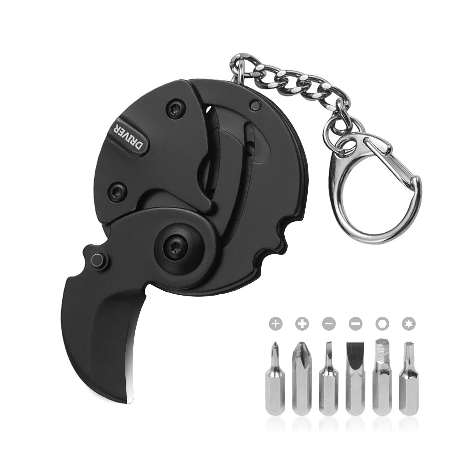 7-in-1 mini outdoor folding multifunctional tool - Small EDC Multitool with Screwdriver Set - portable pocket pendant -Compact Manual Tool (Black