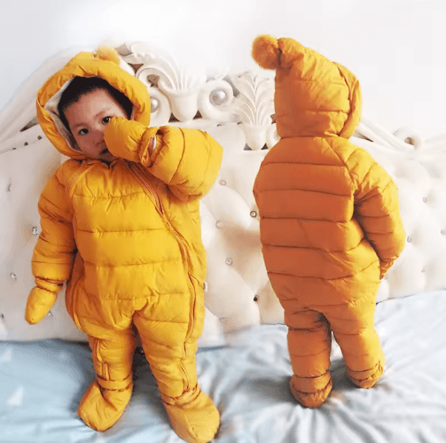 Protect your little one from extreme cold with this ultrawarm baby snowsuit built for freezing temperatures. Designed with a thick fleece baby romper lining, it locks in heat while staying soft and gentle on delicate skin. The fullcoverage design...