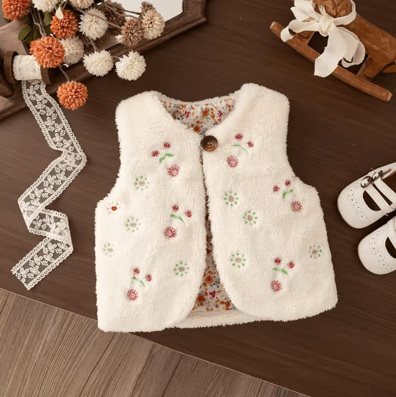 Keep your little one cozy and stylish during chilly days with this adorable baby girl flower embroidery vest. Designed with soft insulated fabric and delicate floral embroidery, this sleeveless jacket combines warmth with sweet charm. The...