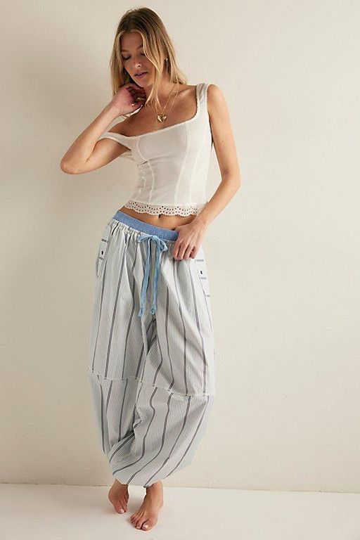Women's Free People Over The Moon House Pants - Natural - Straight-leg pants Lounge away in these so-soft house pants from Intimately, featuring a cotton fabrication, an elastic waistband with a drawstring, and a wide-leg, parachute silhouette for a...