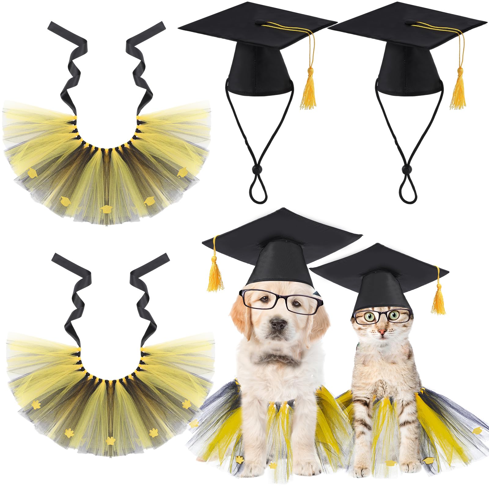 Suhine 6 Pcs Graduation Dog Cap and Gown Costume Accessories Including Class of 2026 Pet Graduation Bandana Tulle Tutu and Dog Caps with Yellow Tassel