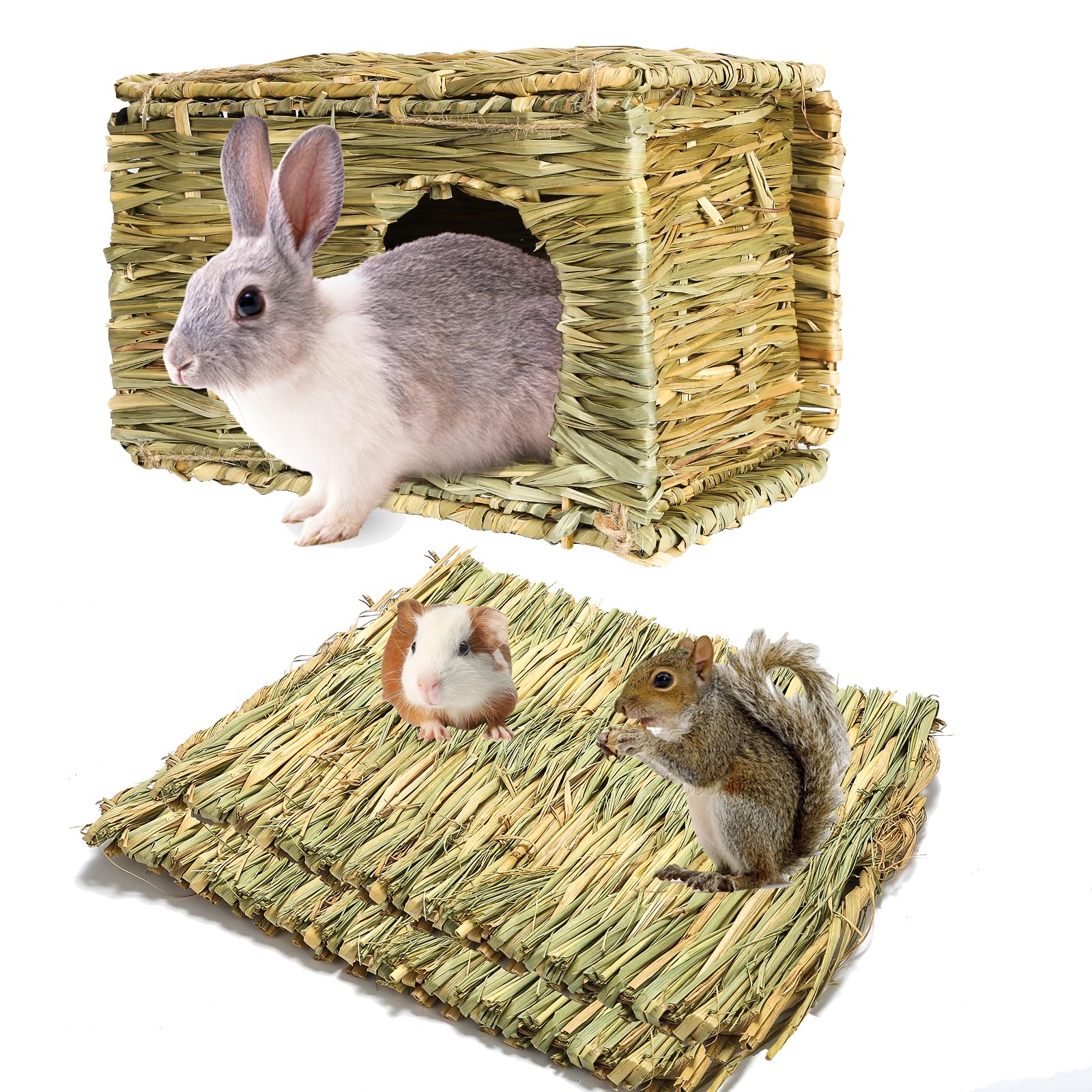 PStarDMoon Bunny Grass House-Hand Made Edible Natural Grass Hideaway Comfortable Playhouse for Rabbits, Guinea Pigs and Small Animals to Play,Sleep