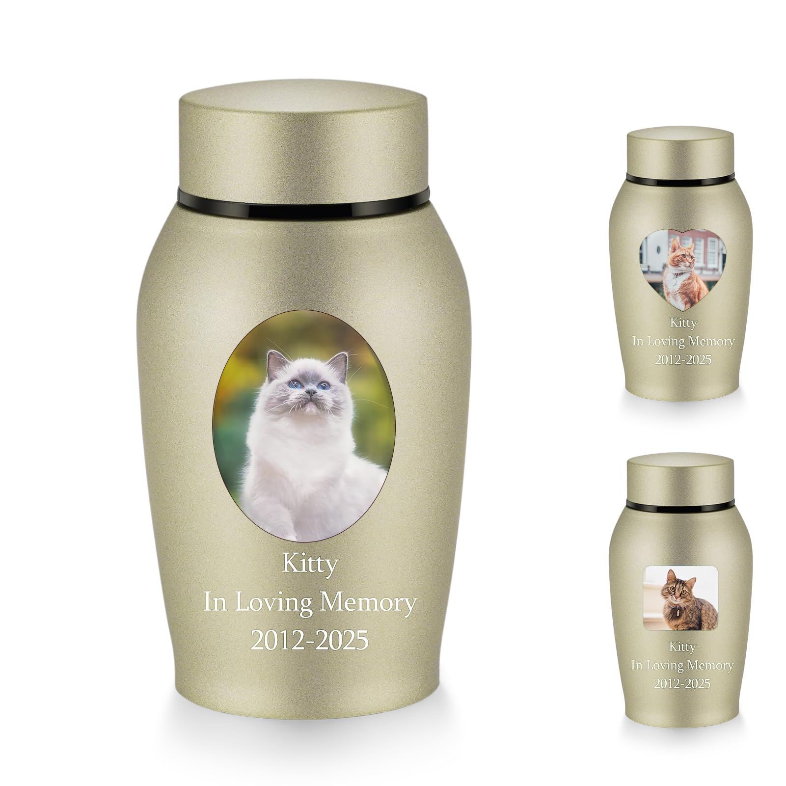CUSTOM SMALL URN FOR PET: Abooxiu Personalize Urn provide a unique way to commemorate your pet. You can upload the photo of the pet and write down the message to remember your loved pet. Click βCustomize Nowβ Button to create a special memorial urn to keep the loving memory of your dog or cat SM