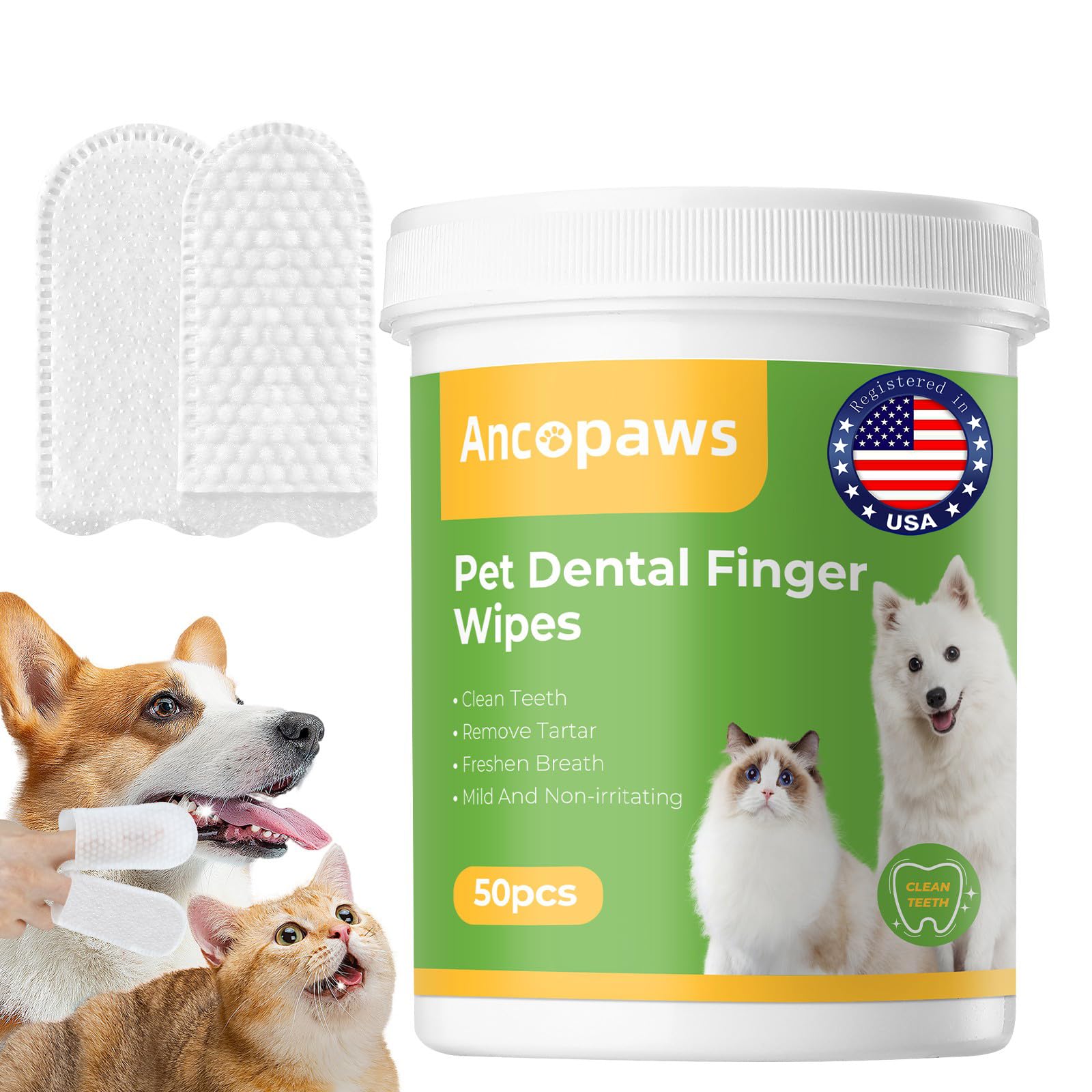 Ancopaws Teeth Cleaning for Dogs & Cats - Dental Care Finger Wipes to Remove Bad Breath - Dog Tooth Brushing Kit - Cat Toothbrush Plaque and Tartar