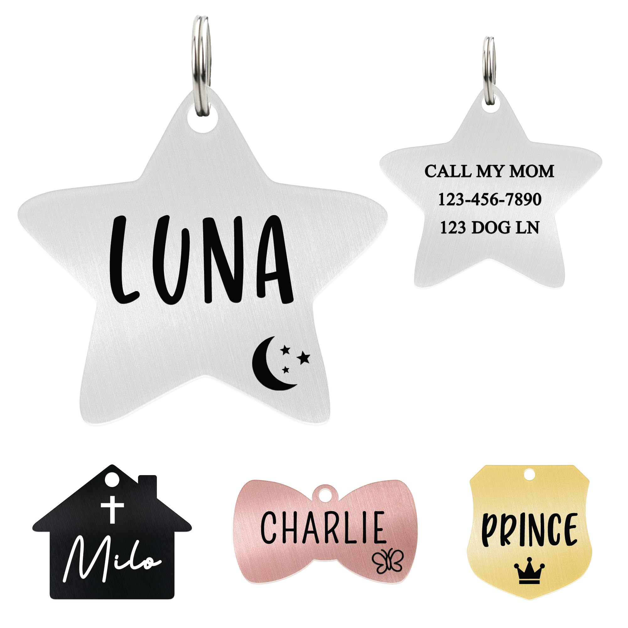 Ultra Joys Cat ID Tag Personalized Pet Tags, Durable Stainless Steel Small Pet Mini Dog Cat Tag Lightweight - Star Tag in Silver