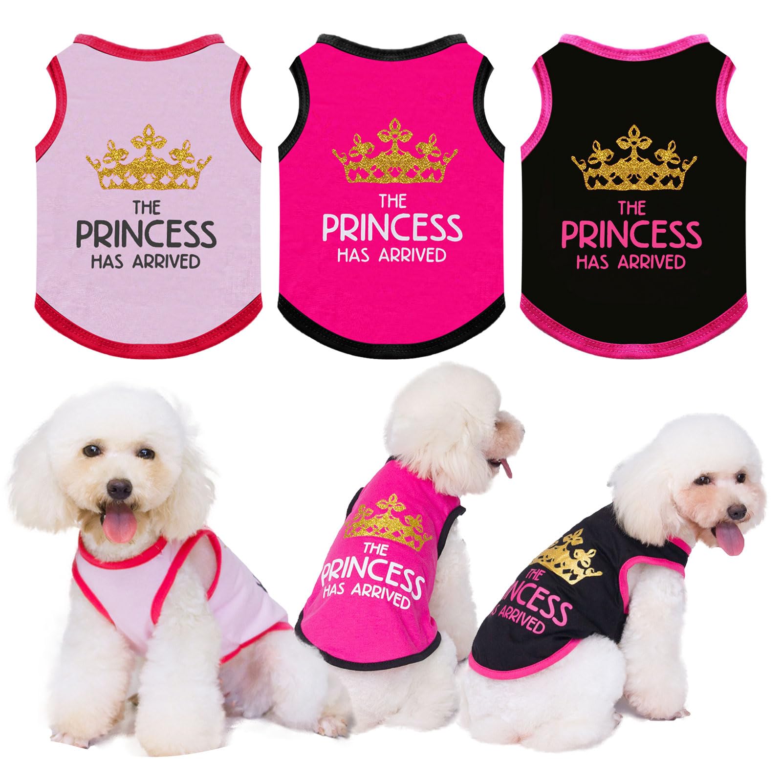 The Printed Prince 3 Pack Dog Shirts - Small Dog Outfits, Cotton Sleeveless Tshirts for Girl Chihuahua, French Bulldog, Dachshund - Pink, Red, Black,