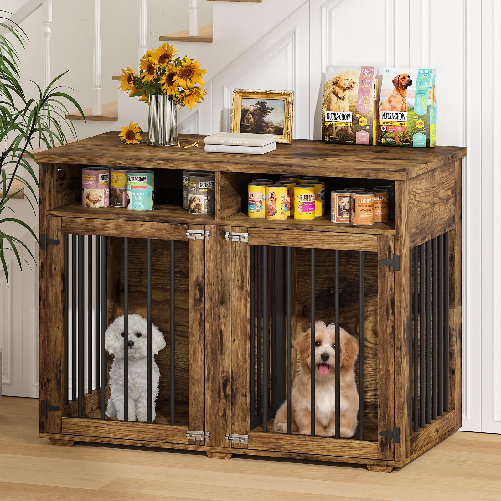 Furniture Dog Crate for Two Dogs, 41 Inch Farmhouse Style Dog Kennel with Removable Divider and Thickened Desktop, Heavy-Duty Base for Small to Medium