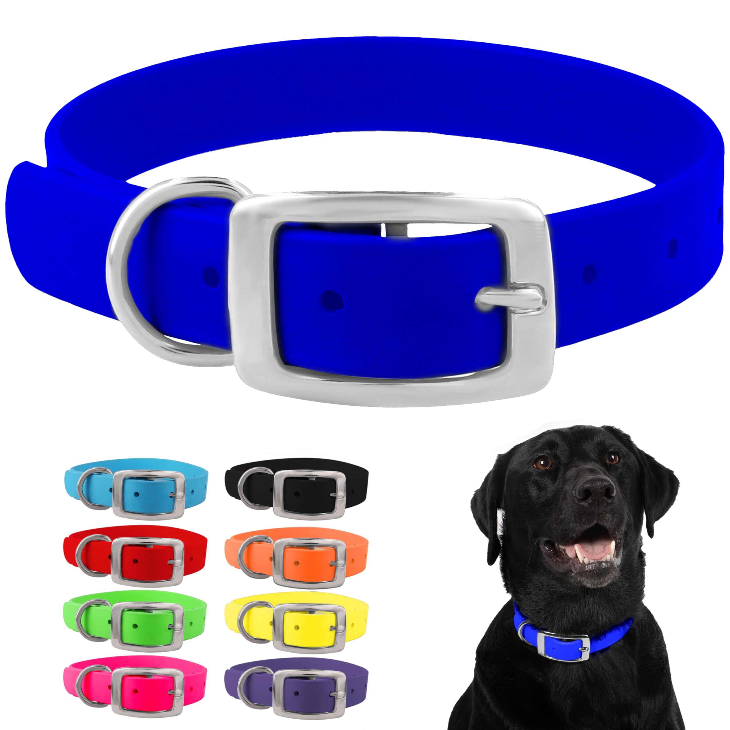 Regal Dog Products Small Blue Dog Collar with Heavy Duty Double Buckle & D Ring | Vinyl Coated, Custom Fit, Adjustable Biothane Dog Collar | Chew