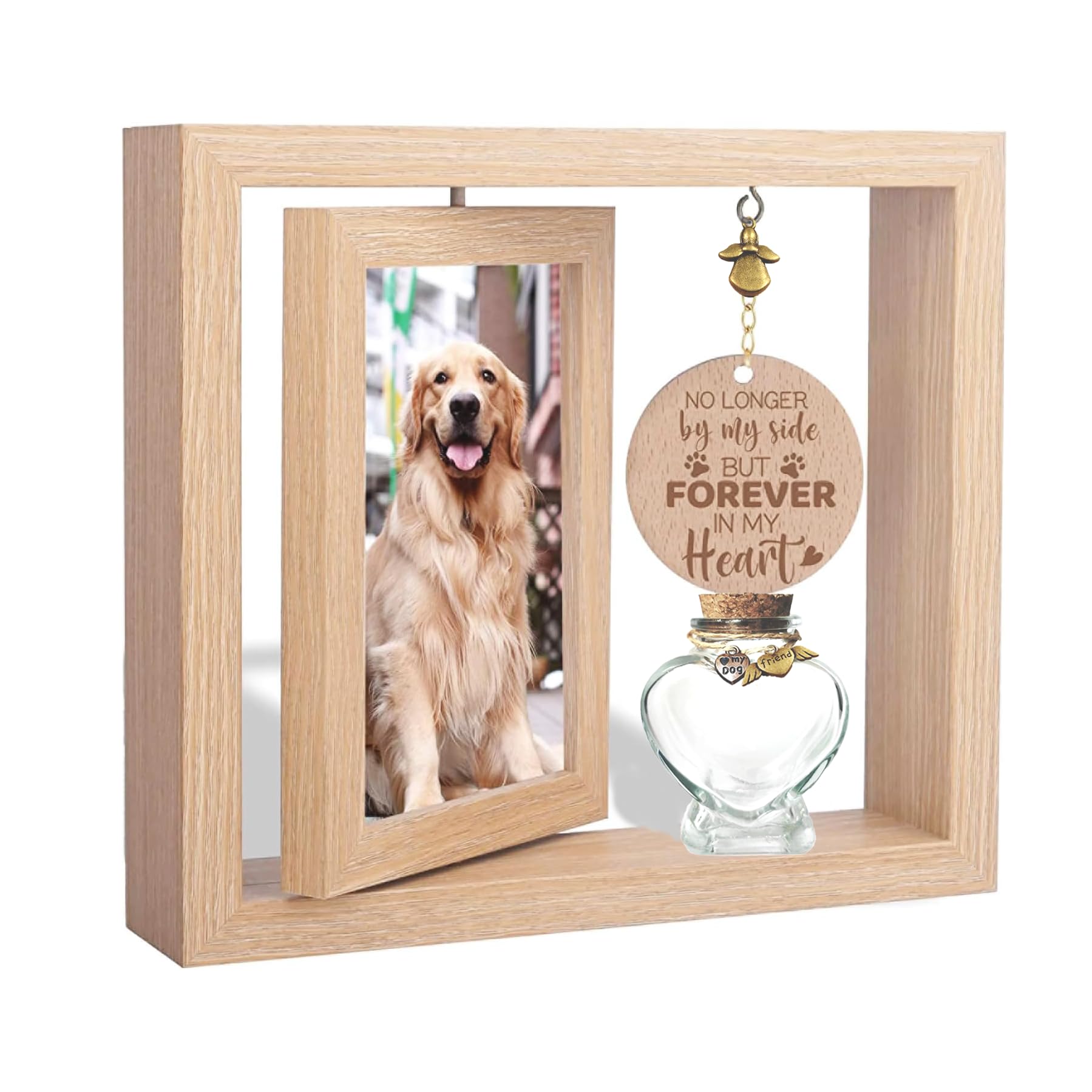 BEEMERIT 360° Rotating Pet Memorial Frame with Keepsake Jar – Double-Sided 4x6 Photo Display for Pet Loss – Perfect Remembrance Gift for Dog and Cat