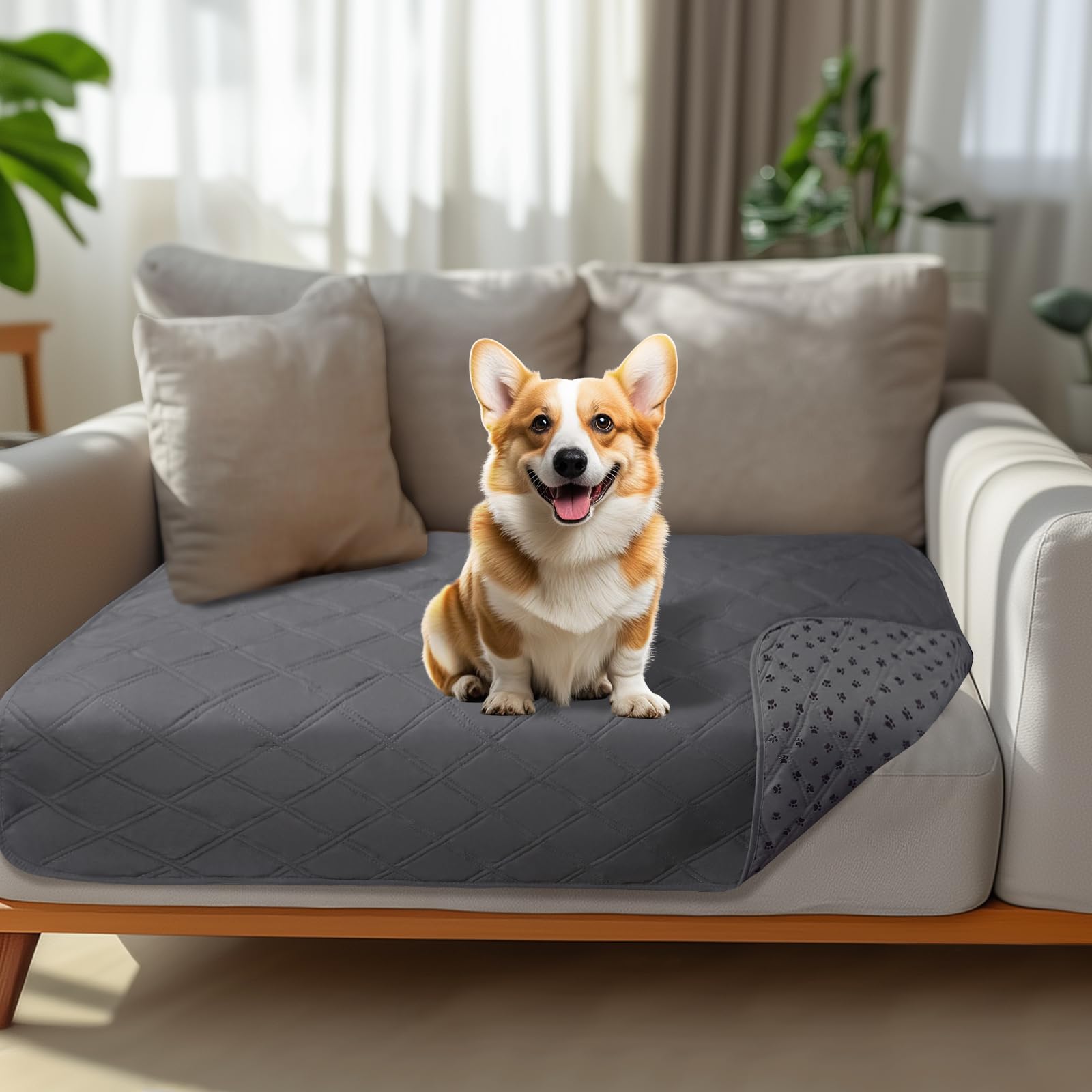 Waterproof Protection:Protect your sofa, bed or loveseat with our premium dog blanket featuring a waterproof inner TPU lining and water-resistant quilted outer layer. Whether it’s accidents, mud, saliva or shedding, this dog couch cover keeps your furniture clean and dry—perfect for homes with a