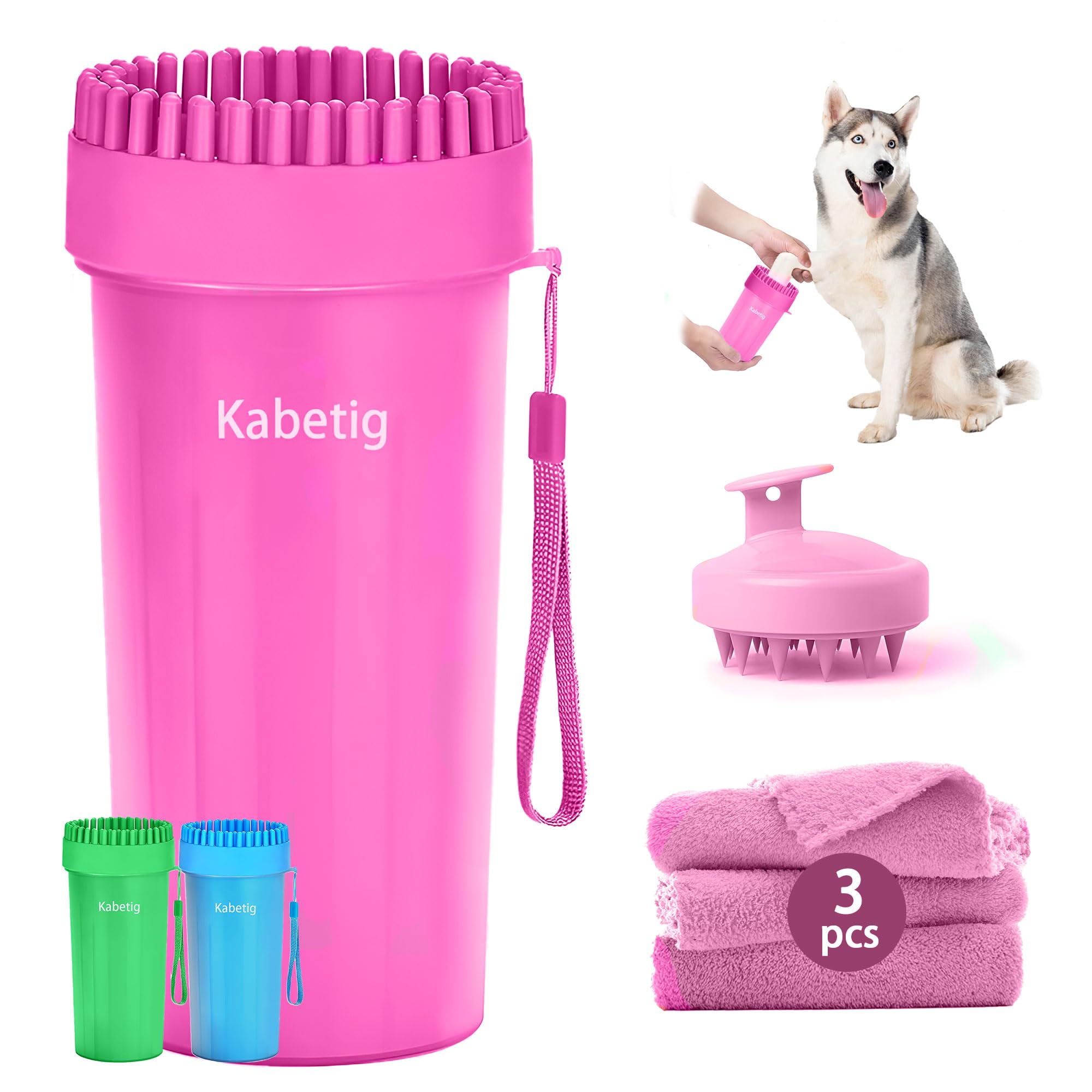 Kabetig Dog Paw Cleaner & Washer for Large/Extra Large Breeds - Muddy Paws Easy Cleaning Cup for Big Dogs - Includes 3 Absorbent Towels(Pink)
