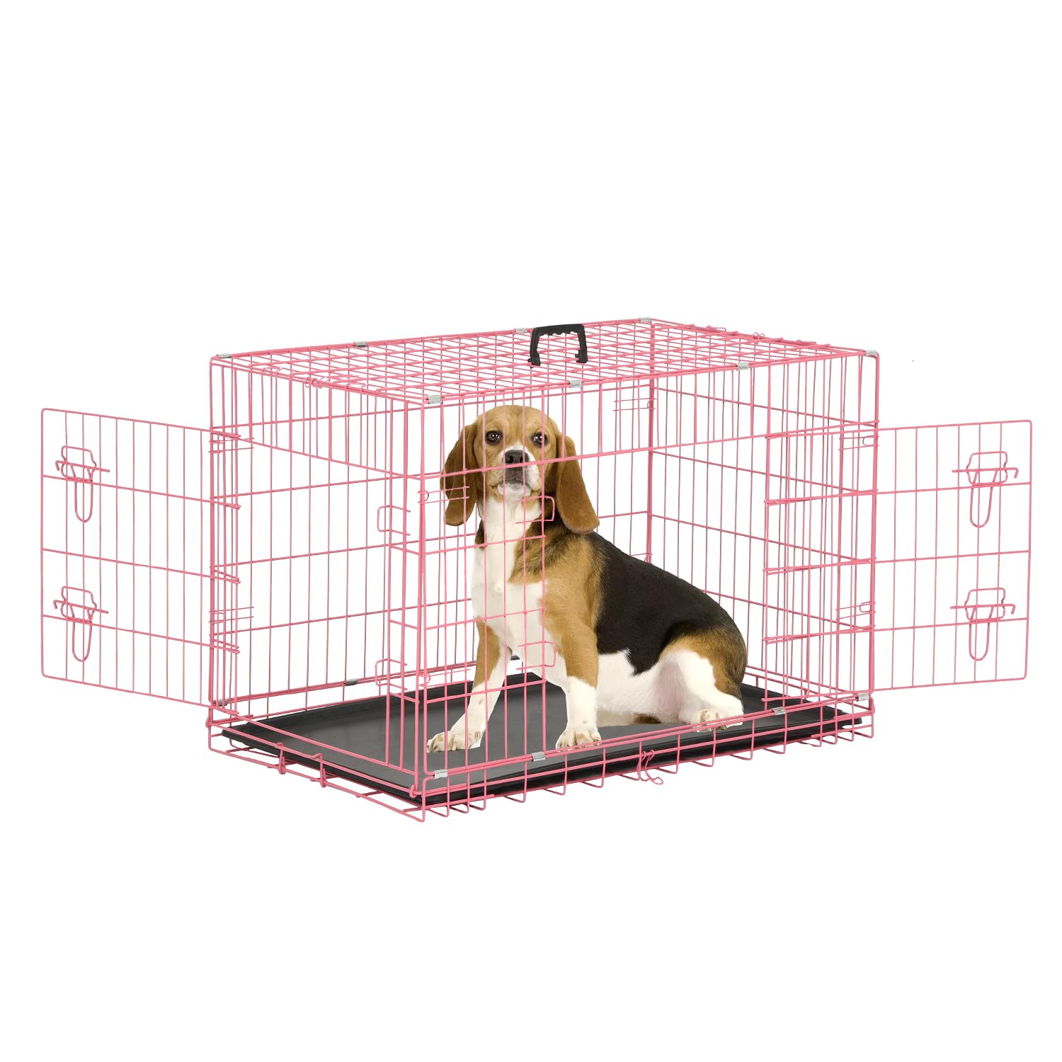 Durable Metal Construction: Our metal wire dog crate is crafted from premium materials, ensuring it is long-lasting and resistant to rust, making it a reliable choice for pet owners who want a sturdy and secure space for their furry friends. Convenient Double-Door Design: Featuring two large entranc