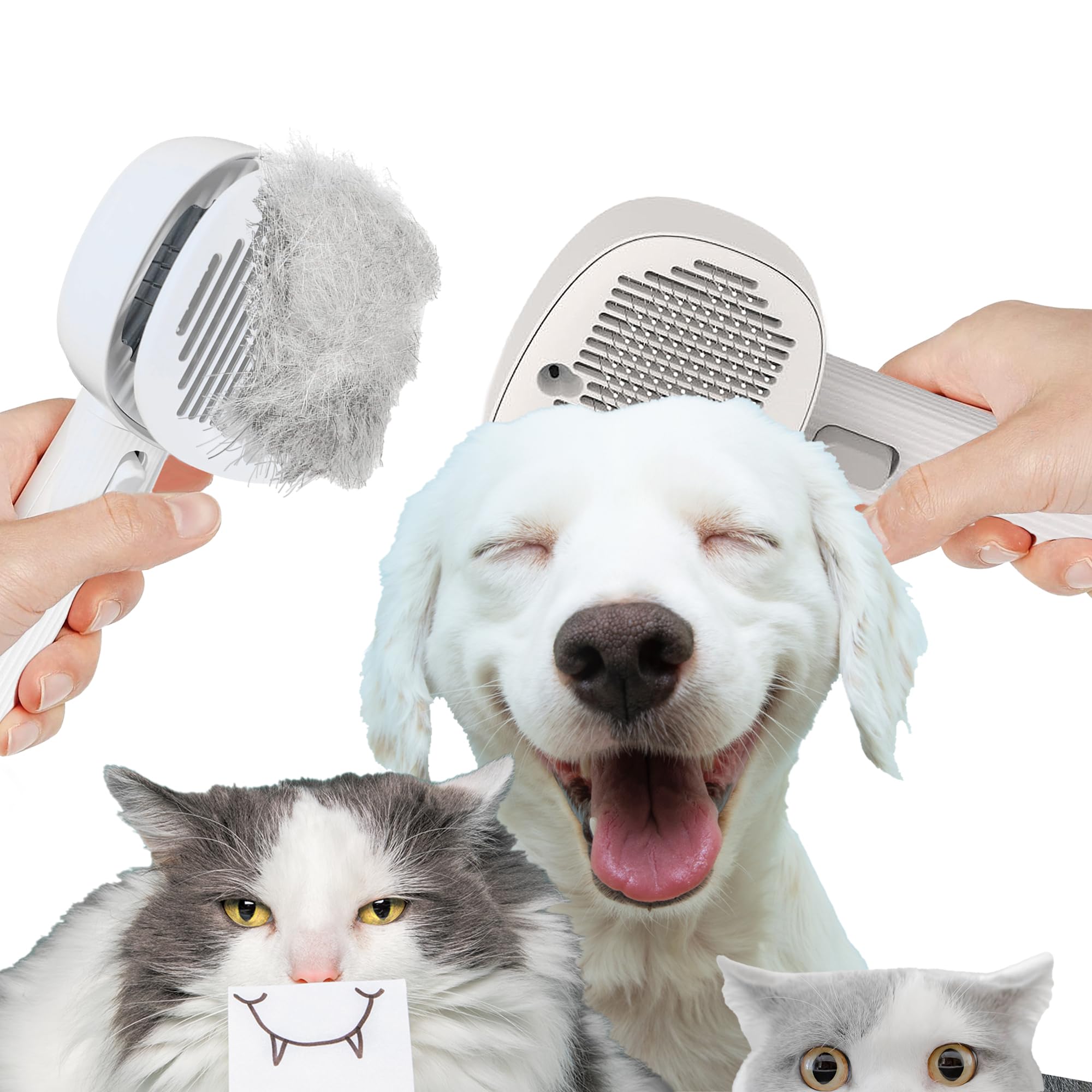 3-in-1 Steam Brush :This cat brush for shedding combines hair removal, cleaning, and a soothing massage in one tool. The steam brush for pets uses gentle mist to detangle fur effortlessly, perfect for long-haired cats and short-haired dogs. As a cat brush with steam, it delivers a spa-like experie