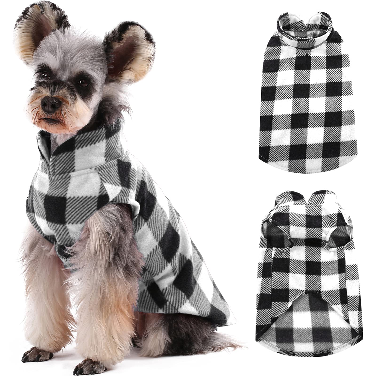Kuoser Dog Fleece Vest, Warm Plaid Dog Sweater with Leash Hole, Soft Puppy Pajamas Dogs Winter Coat Cozy Puppy Jacket for Small Medium Dogs Cats,