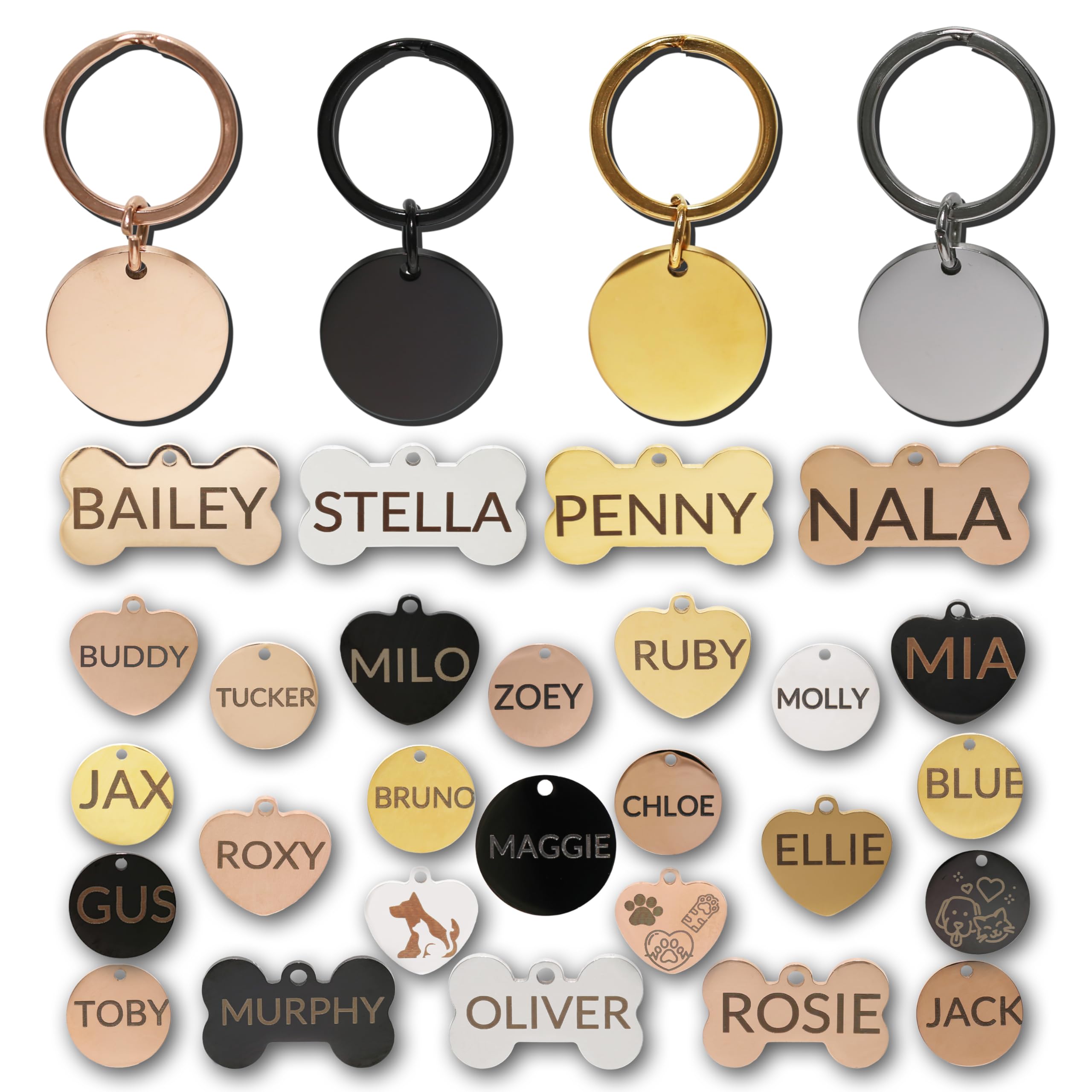 Aguachimp Stainless Steel Dog Tags Personalized, Pet Tag Personalized, Cat Tag Personalized, Pet ID Tags, Engraved on Both Sides, Bone, Heart and