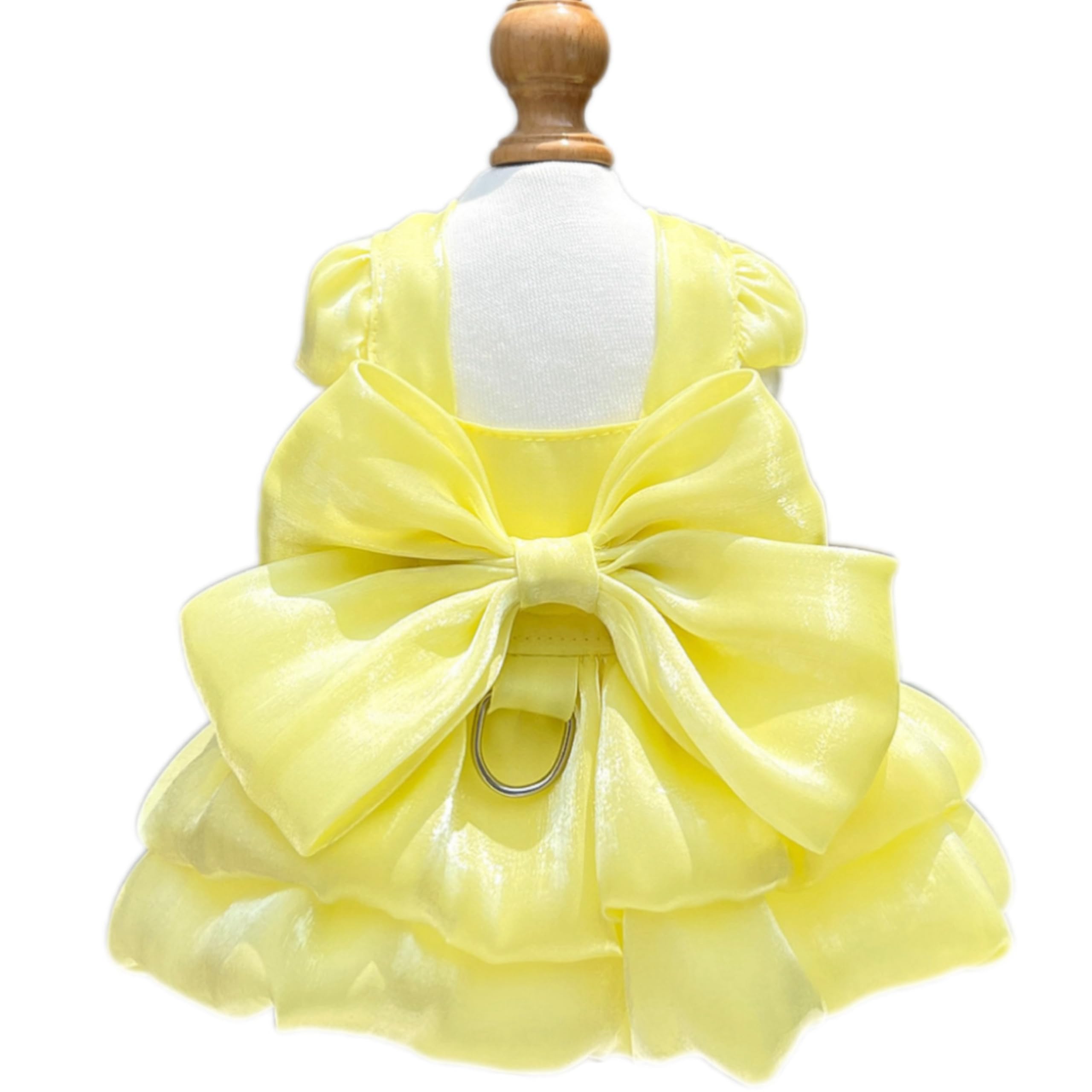 Yaopelky Dog Princess Dress for Small Dogs Cat Bow Dress with D-Ring Dog Girl Wedding Clothes Cute Puppy Tutu Skirt Doggy Summer Costume (Yellow,