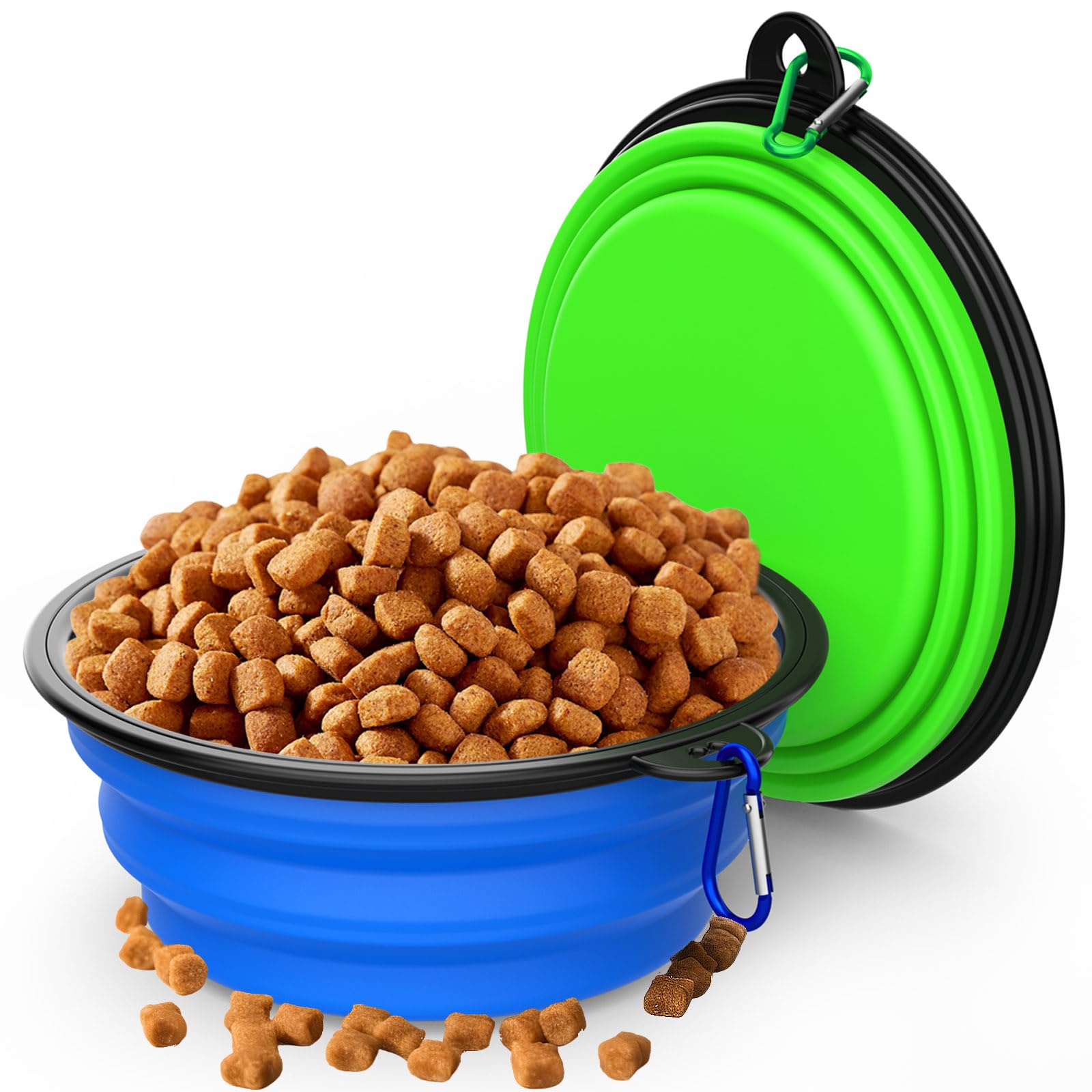 2 Pack Collapsible Dog Bowl Travel Portable Pet Bowls [34oz,1000ml],Expandable Foldable Food Water Feeding Dishes for Traveling Hiking Walking,with